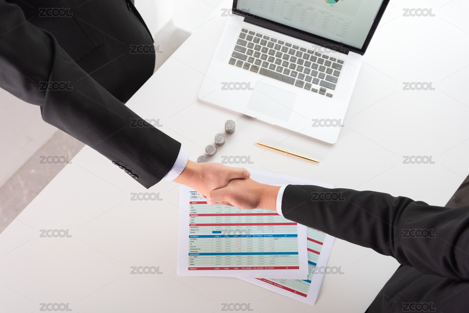 两个亚洲商界女性shking他们的手在桌子上。他们办公室的上述观点只是完成他们的会议的采访。一到工作的概念。