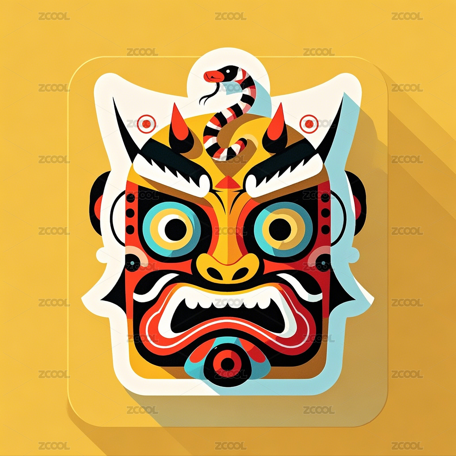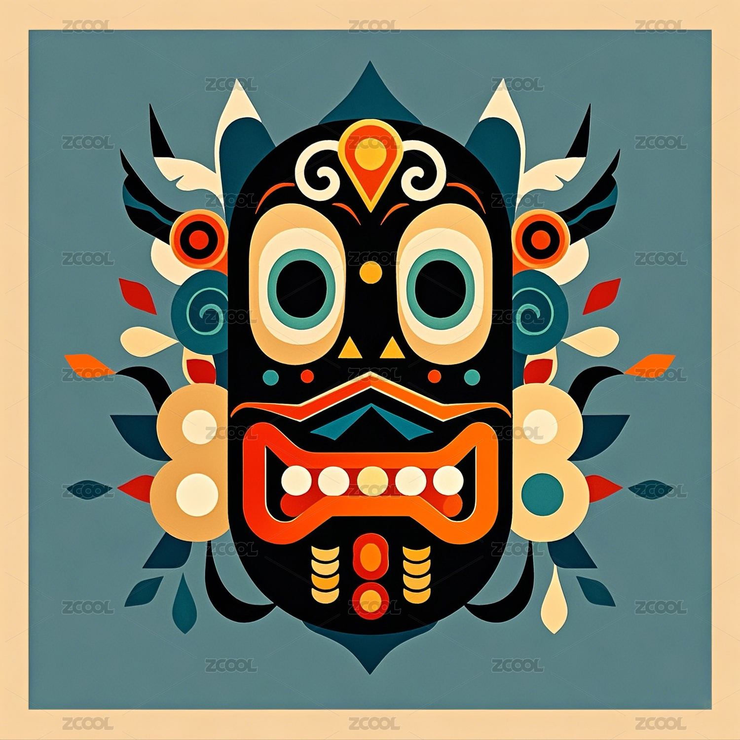 傩文化,巫文化,面具,民族风,扁平风格,抽象,传统文化,民俗,图案,纹样