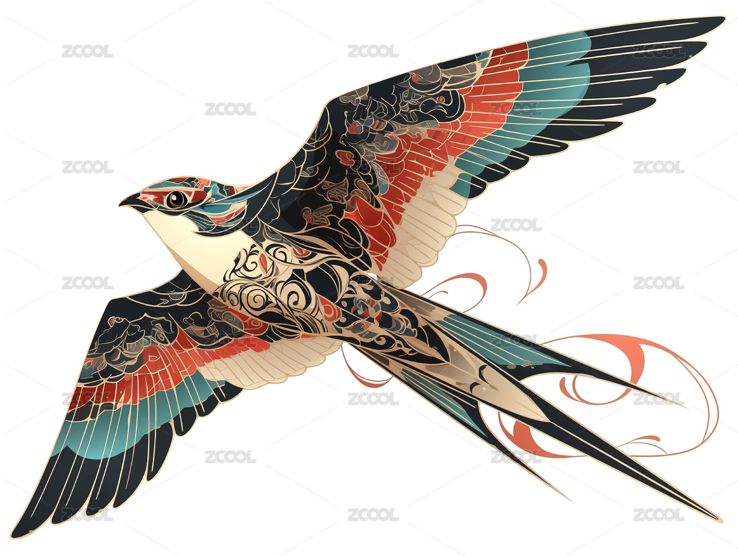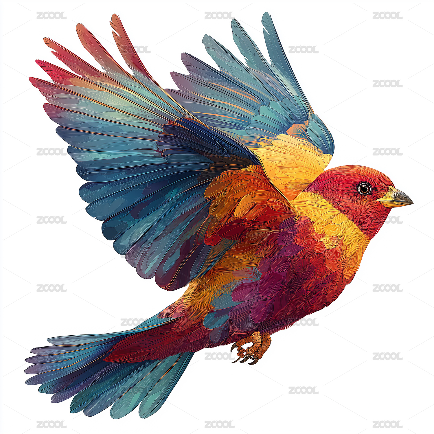 炫彩飞行动态小鸟插画艺术设计素材