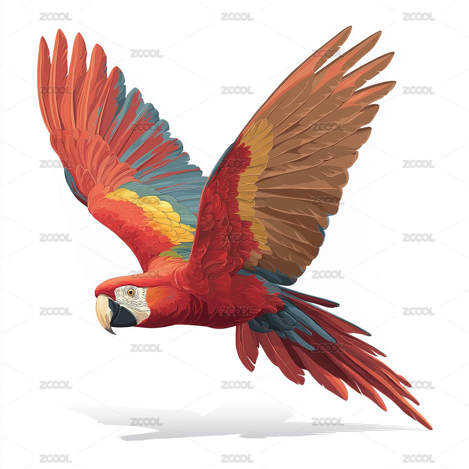 写实飞行动态金刚鹦鹉插画设计素材