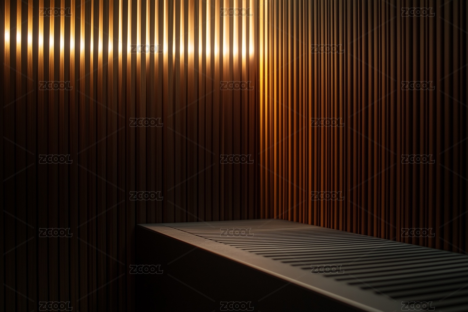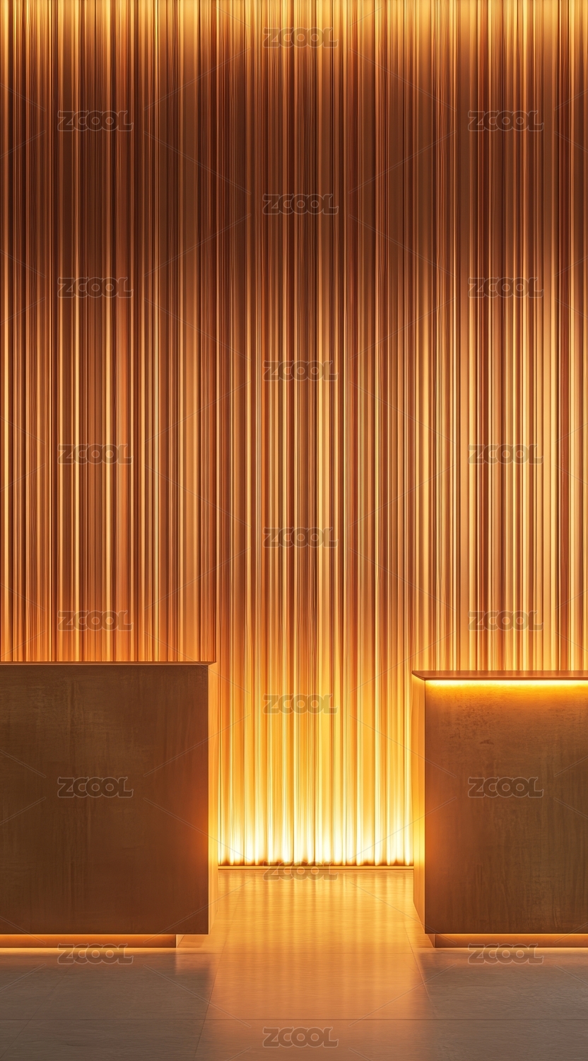 现代木质条纹墙与暖光照明设计