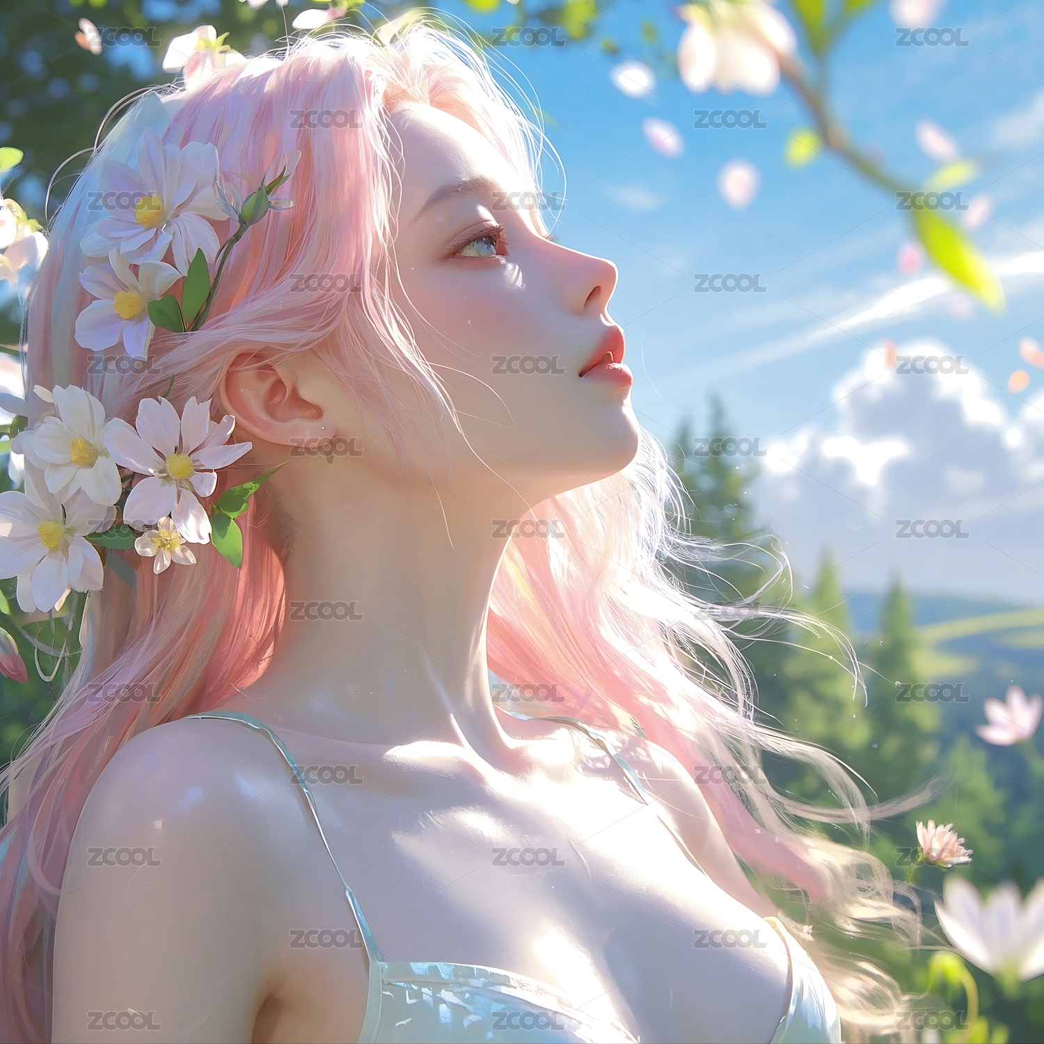 粉色长发女孩梦幻