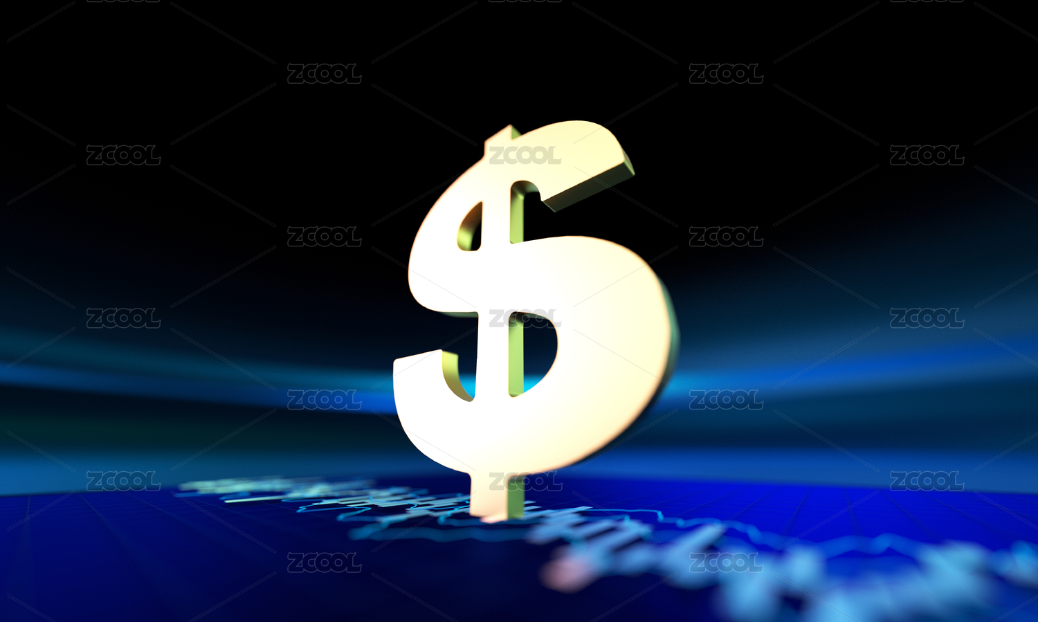 金色美元符号蓝光背景