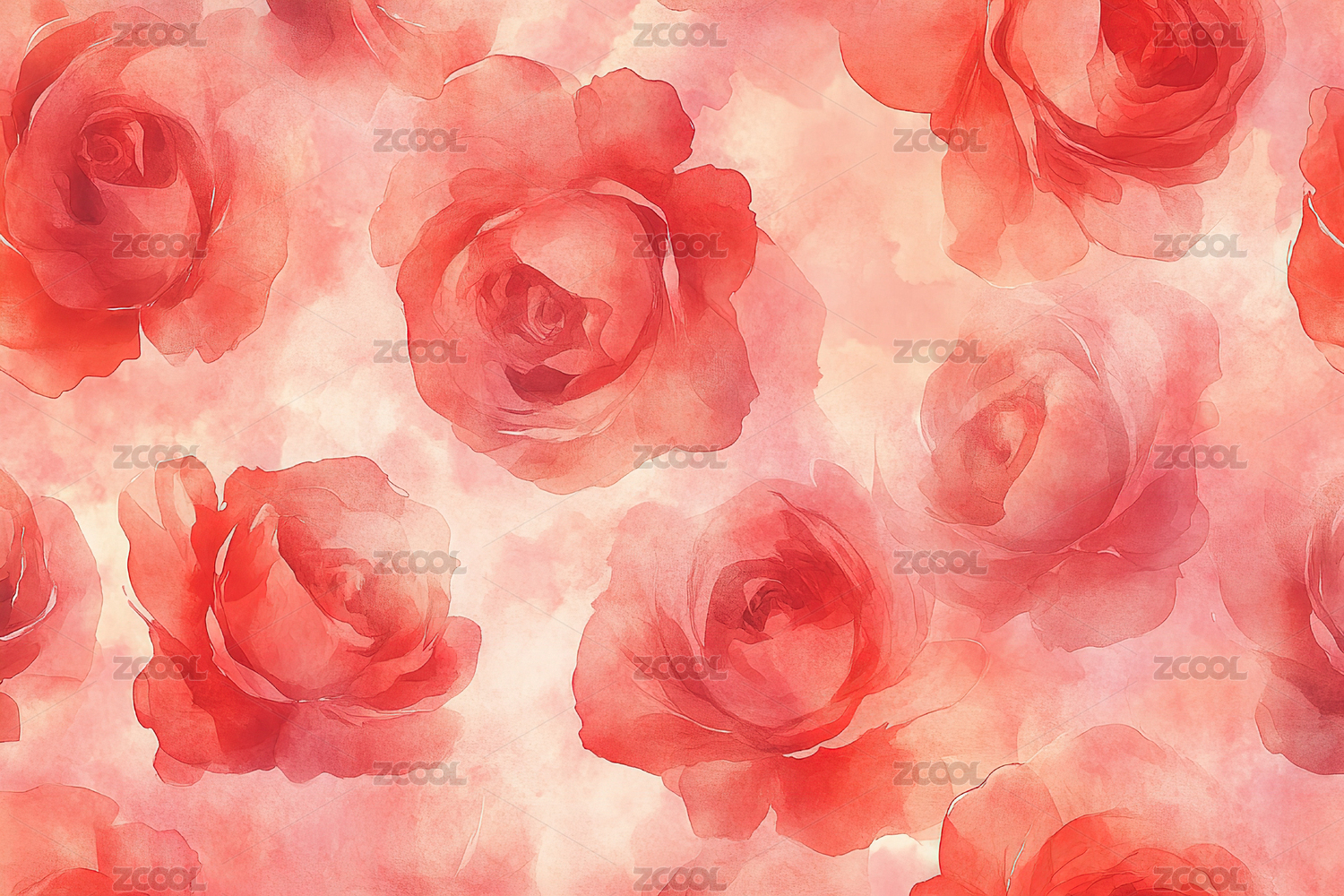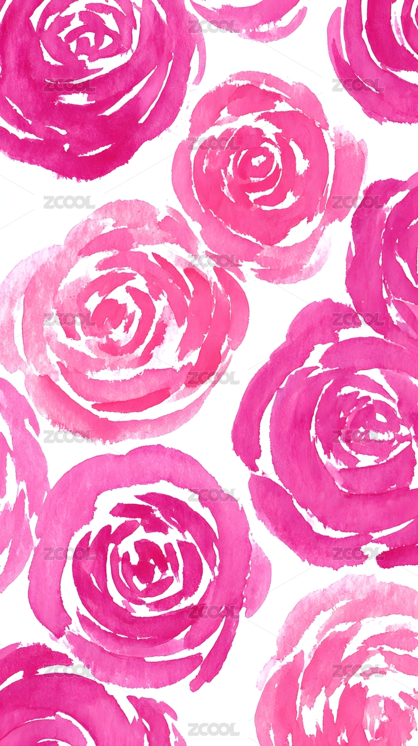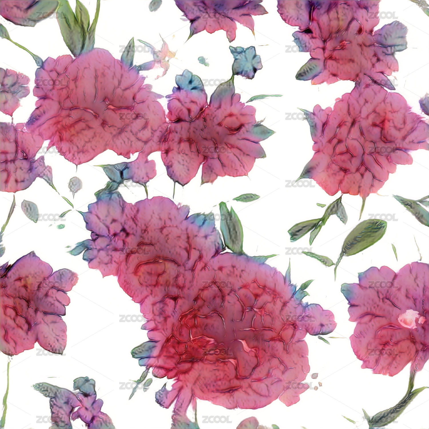 水彩粉色玫瑰花背景数码印花花型图案设计
