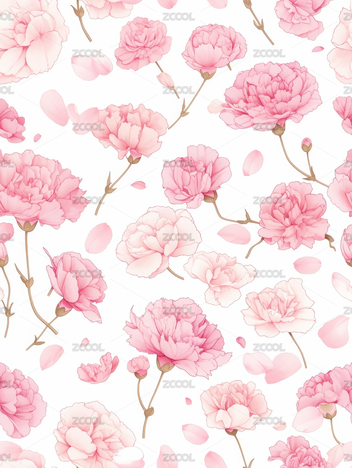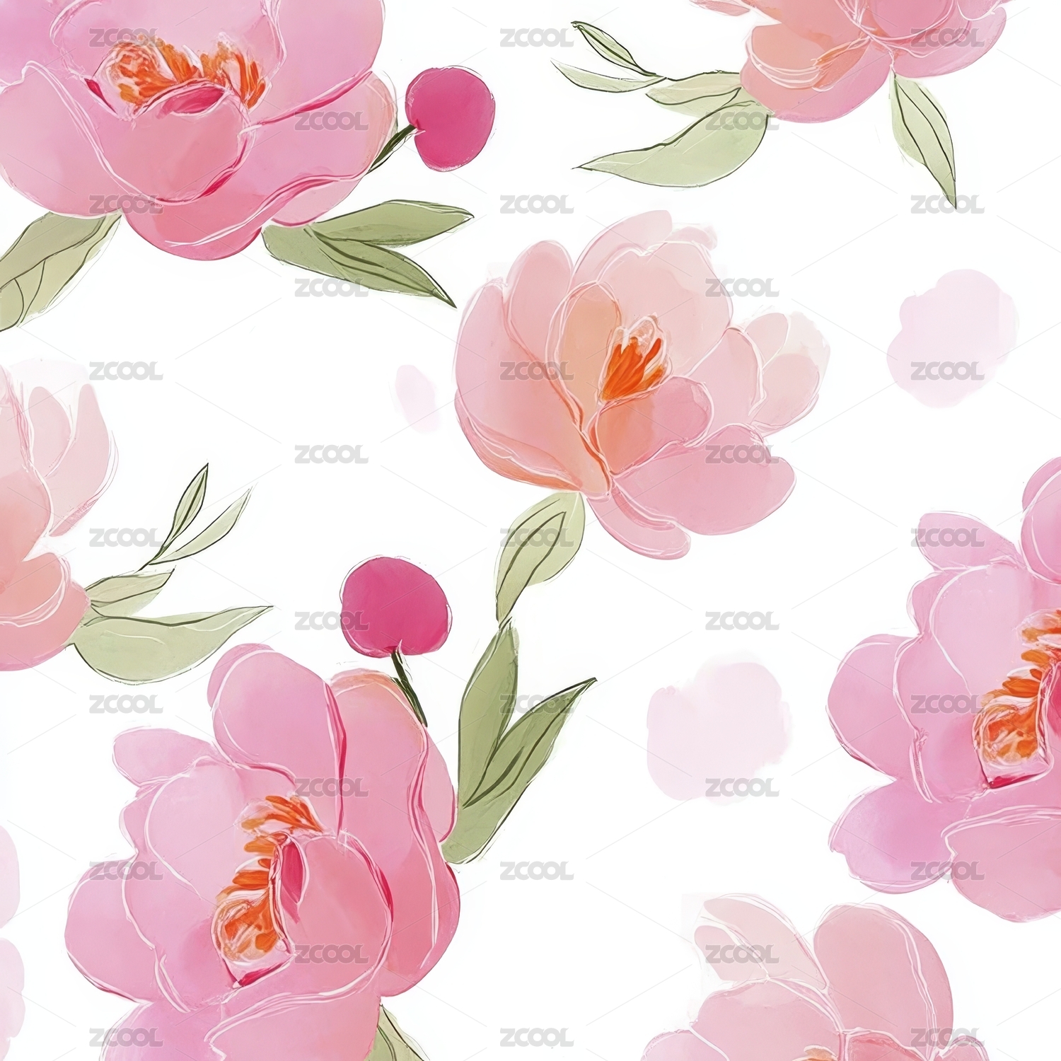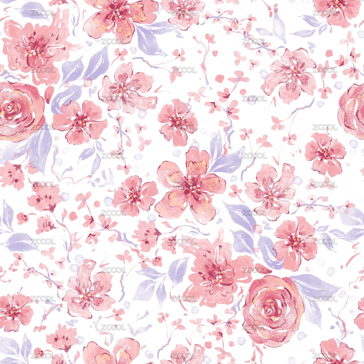 水彩粉色玫瑰花背景数码印花花型图案设计