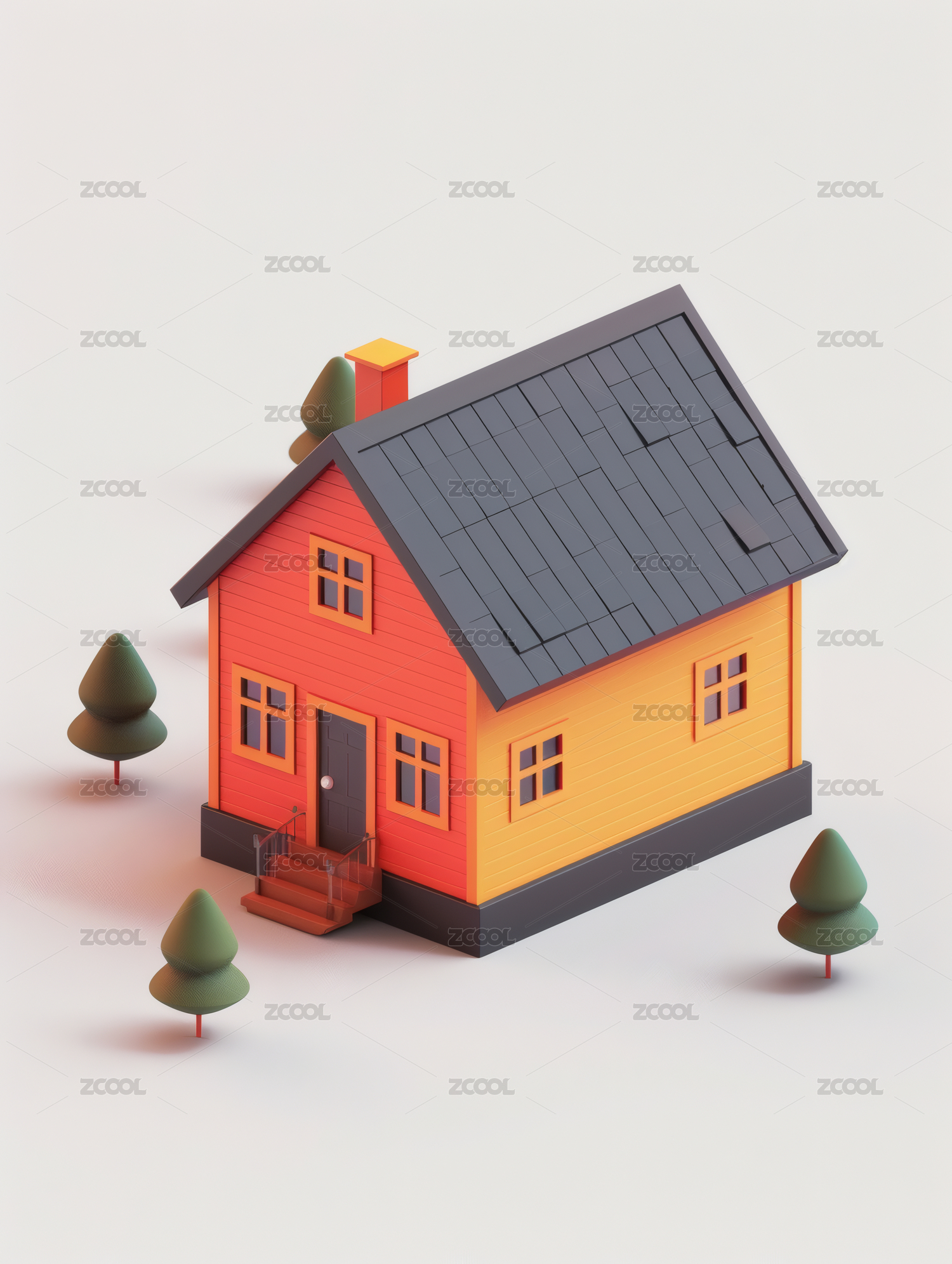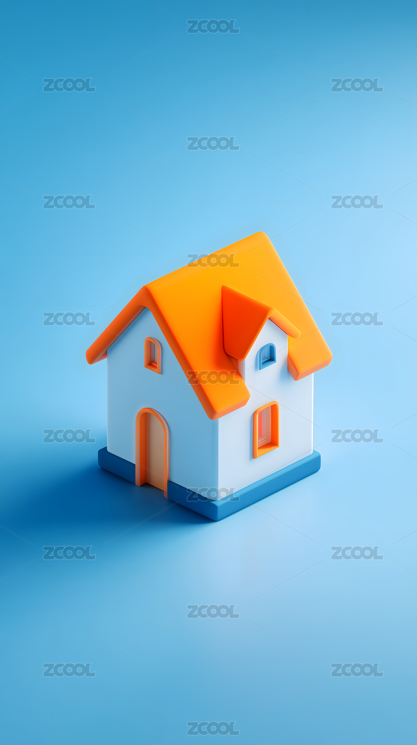 简约,商业,抽象,艺术,装饰,3D渲染,房屋,模型,卡通,蓝色