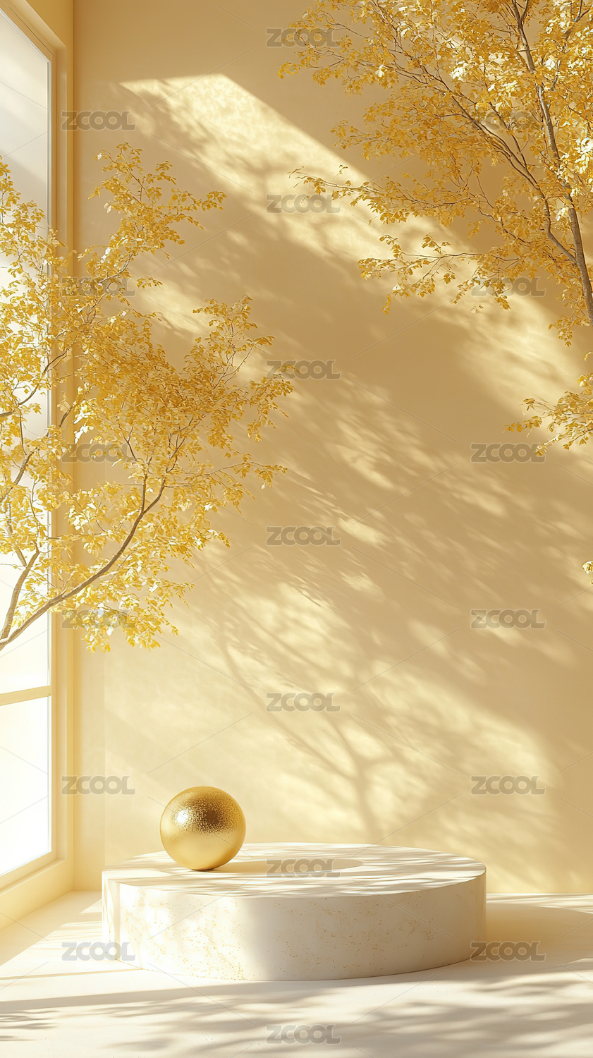 金色叶子装饰的简约展示台
