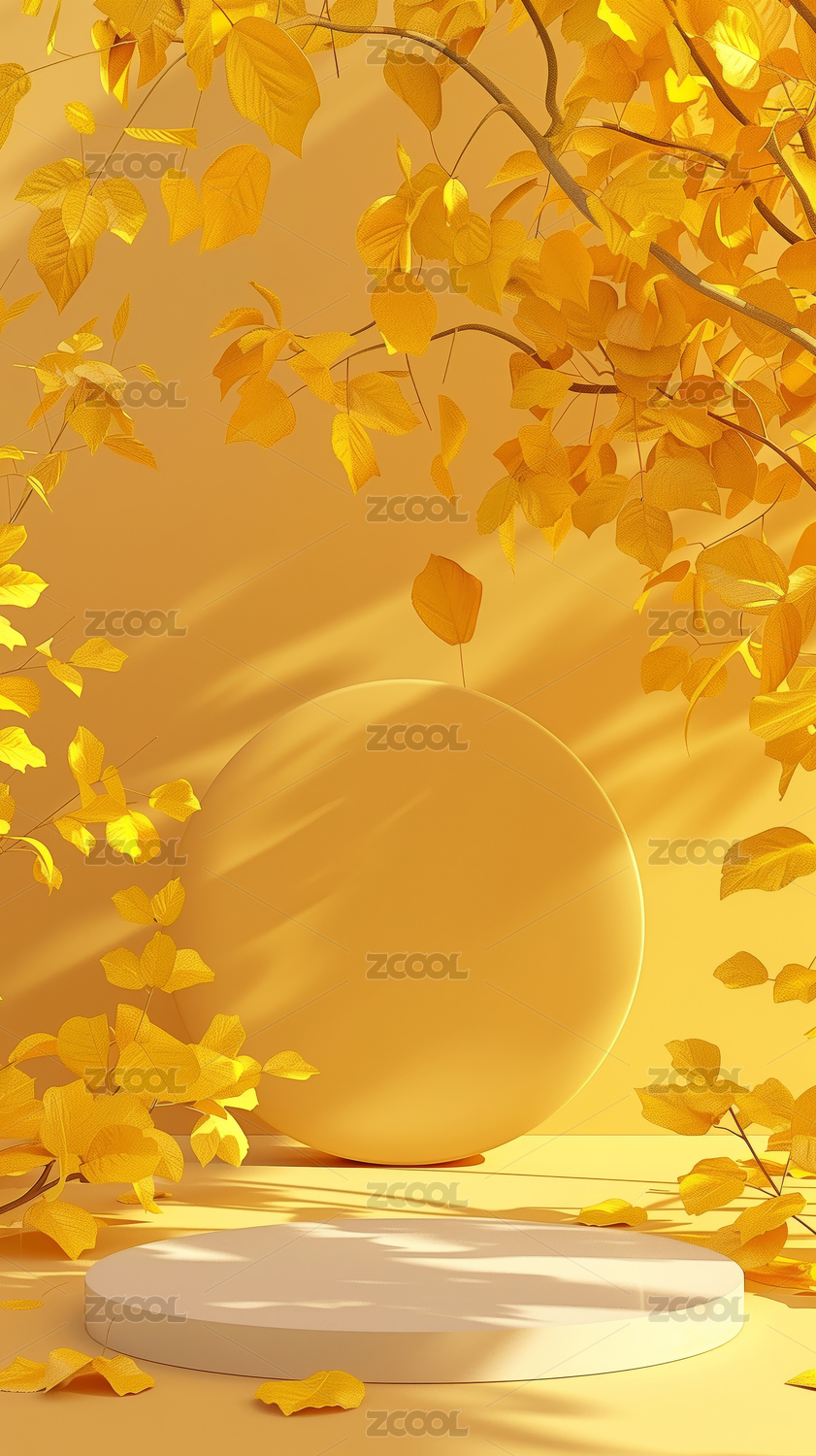 3D黄色树叶圆形产品展台
