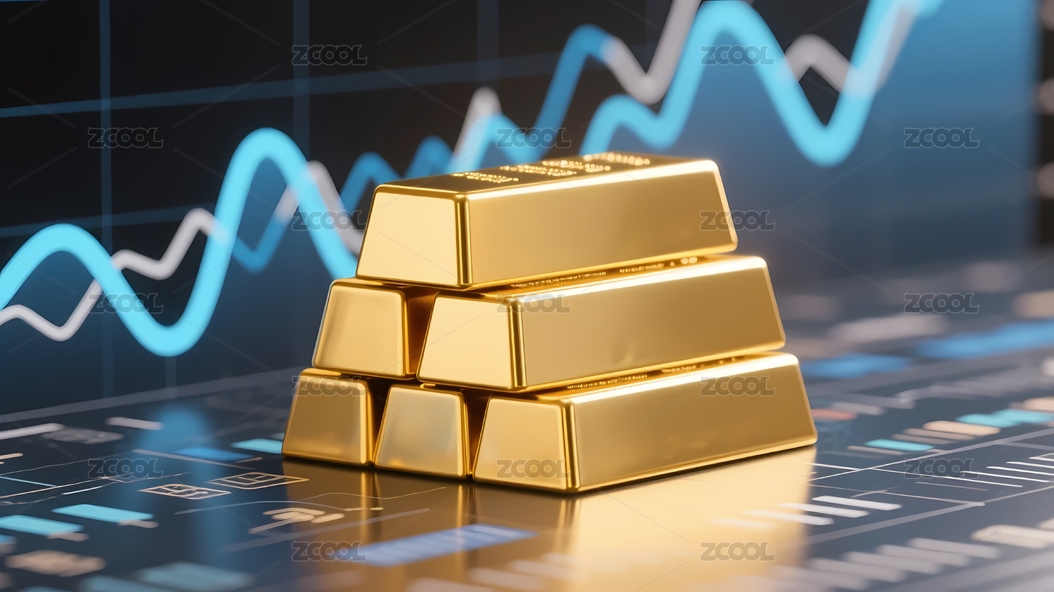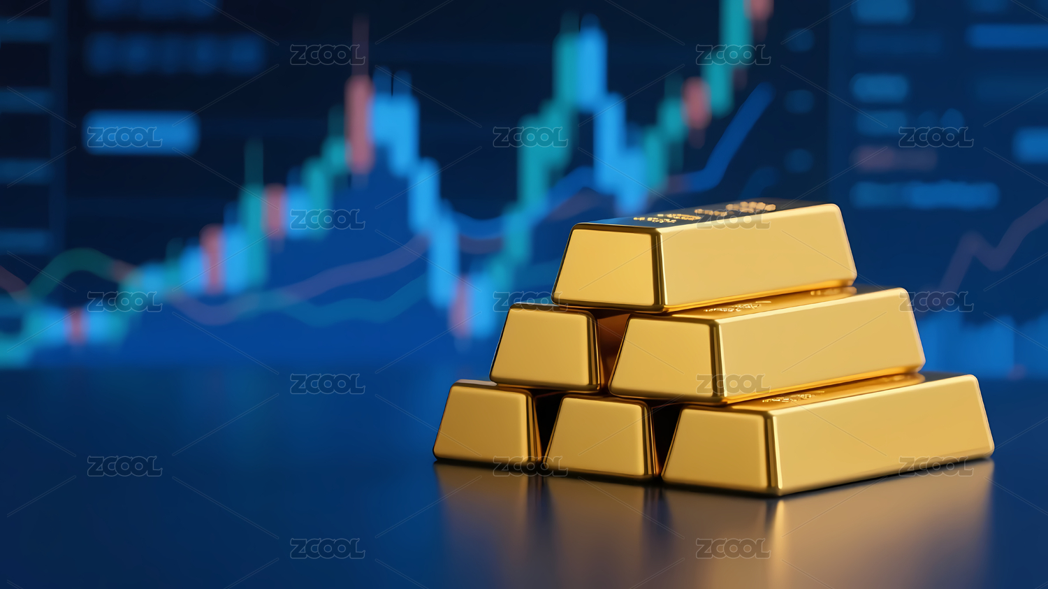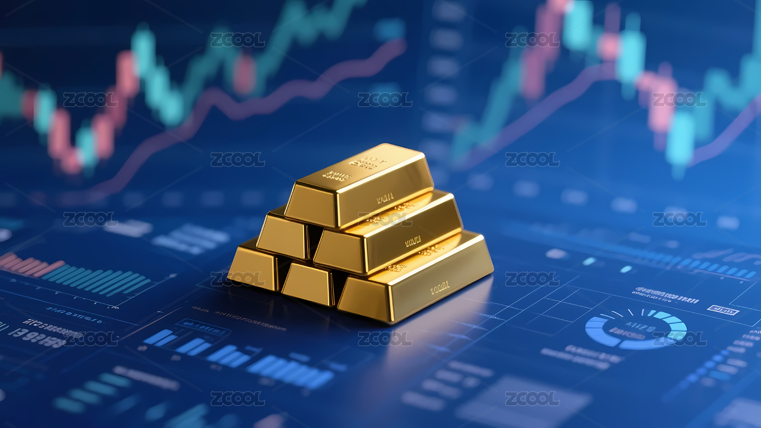 金色金条叠加在金融图表上