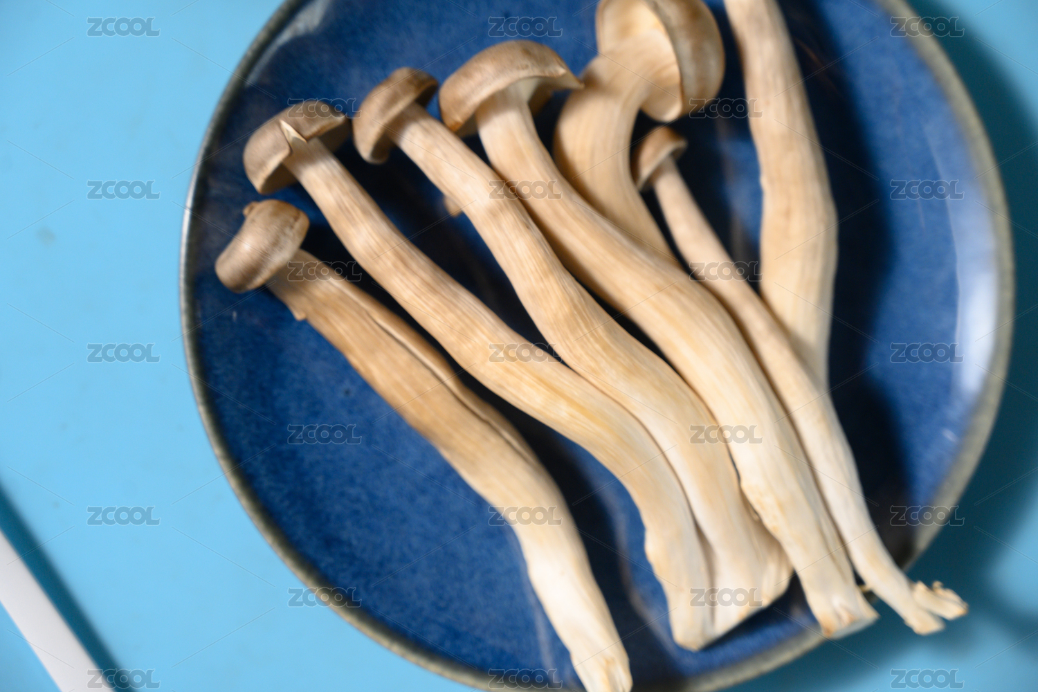 桌面上的盘子里的美味可口的新鲜鹿茸菇