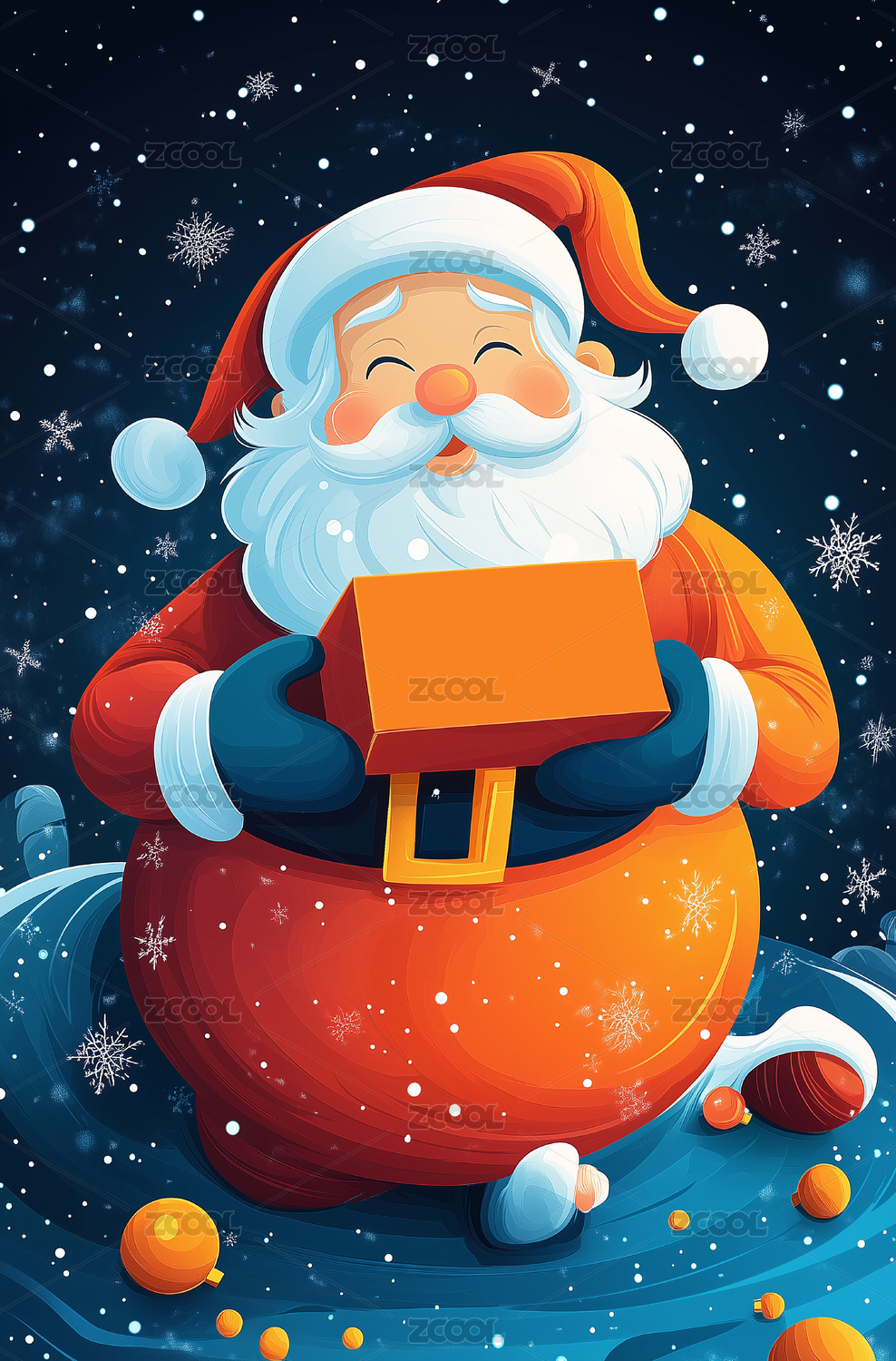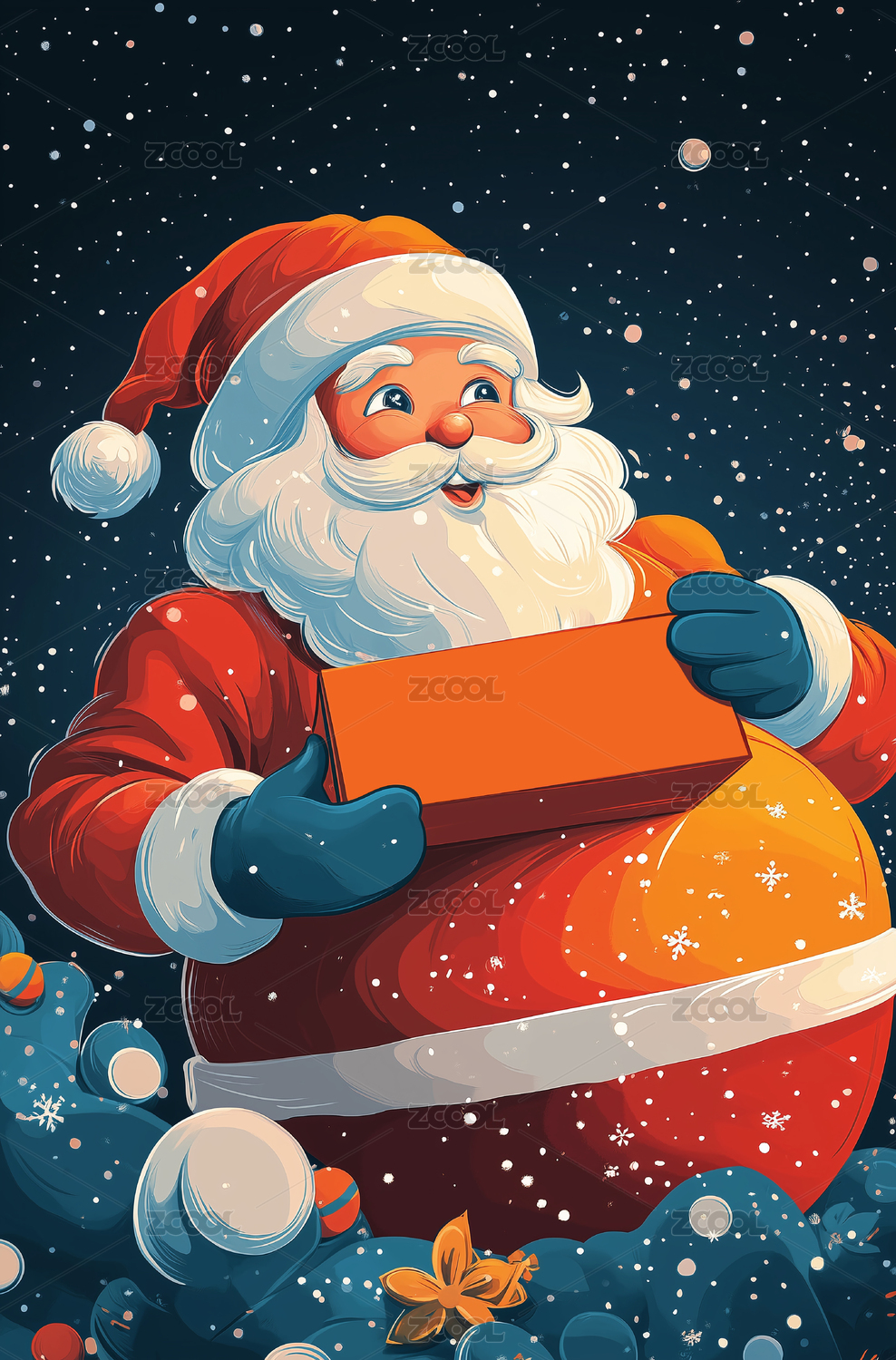 拿着礼盒的胖胖圣诞老人