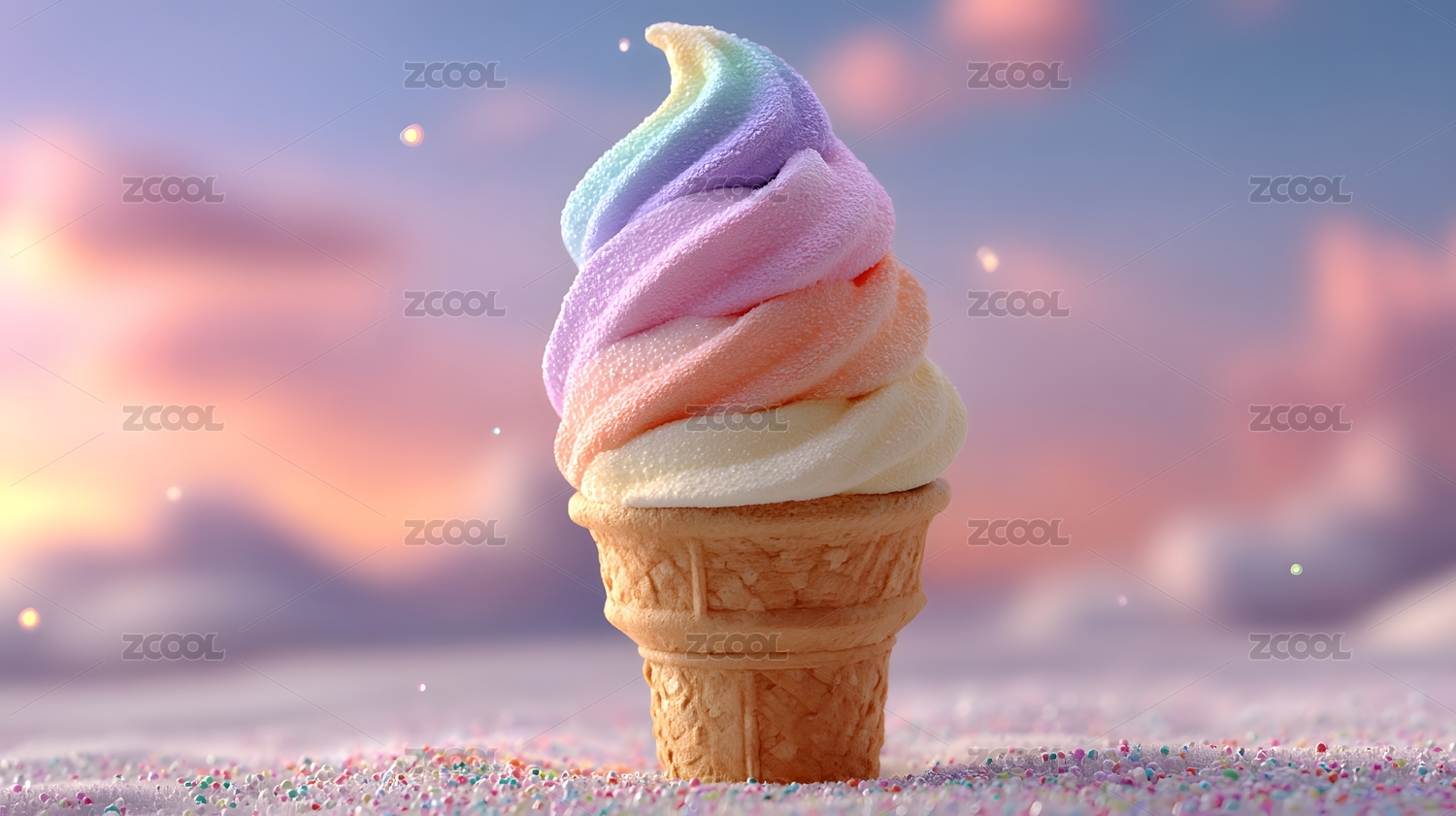 食物,清新,梦幻,绿色,甜筒,雪糕,冰淇淋,海报,插画