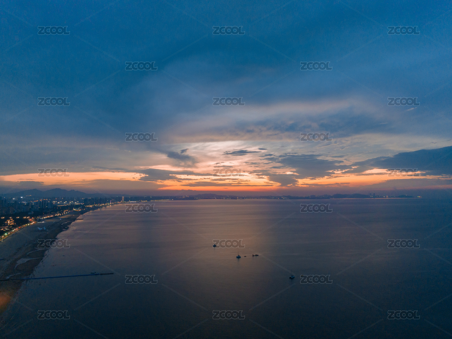夏天涠洲岛三彩沙滩海边日出朝霞