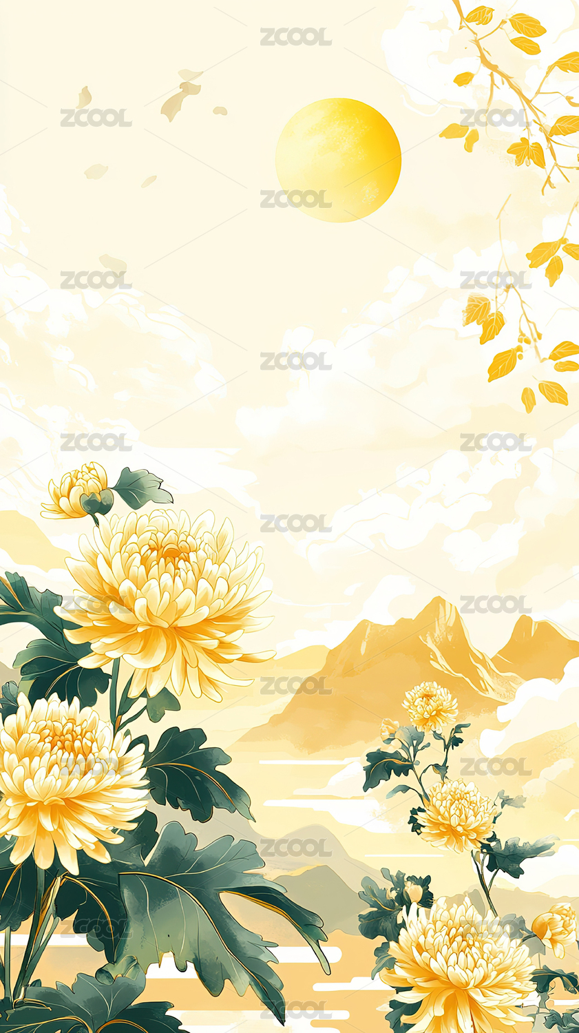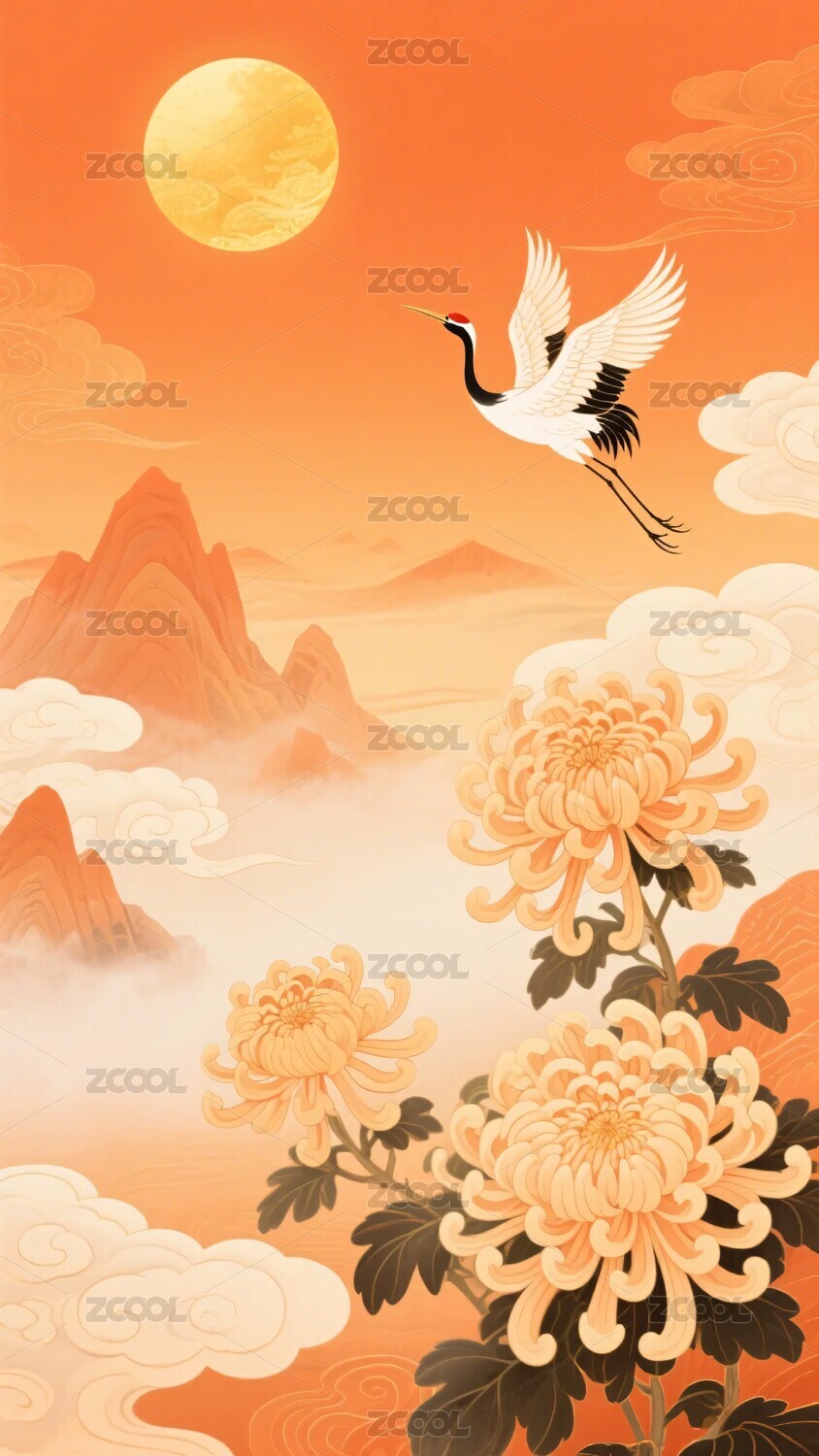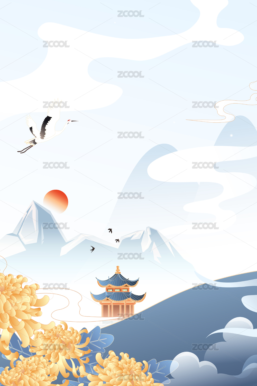 白鹭在飞菊花盛开寒露节气设计插画海报