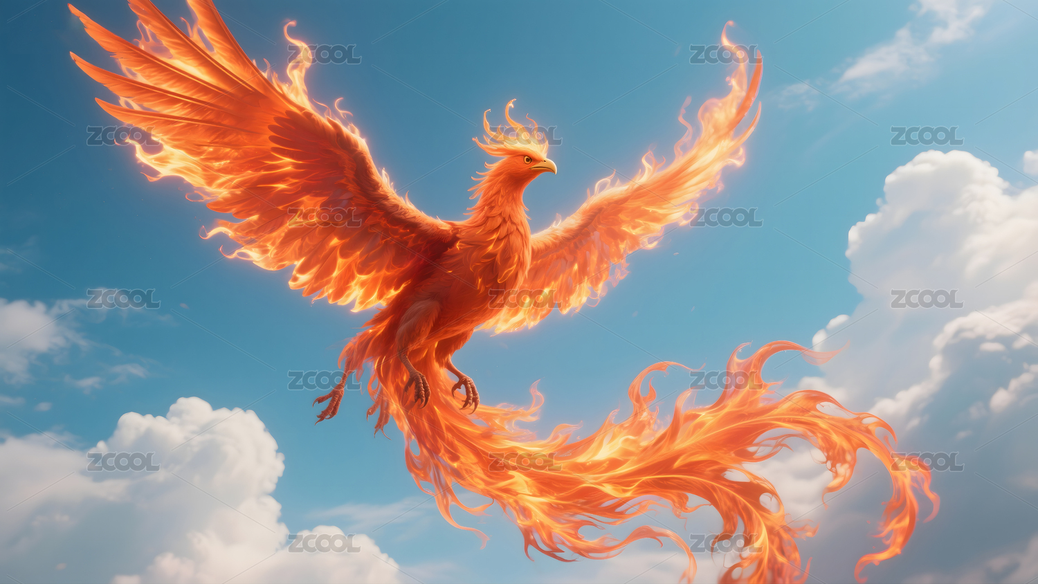 山海经神话传说天空飞翔火凤凰3D立体插画