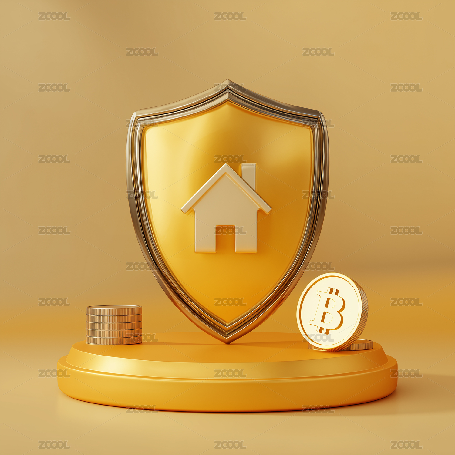 轻拟物,矢量,渐变,金币,房地产,房屋,保障,保护,服务,安全