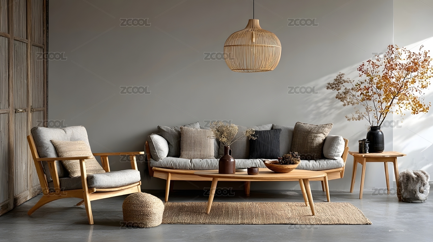 日式风格,极简风格,客厅设计,木质家具,原木色,简约,现代,舒适,温馨,自然