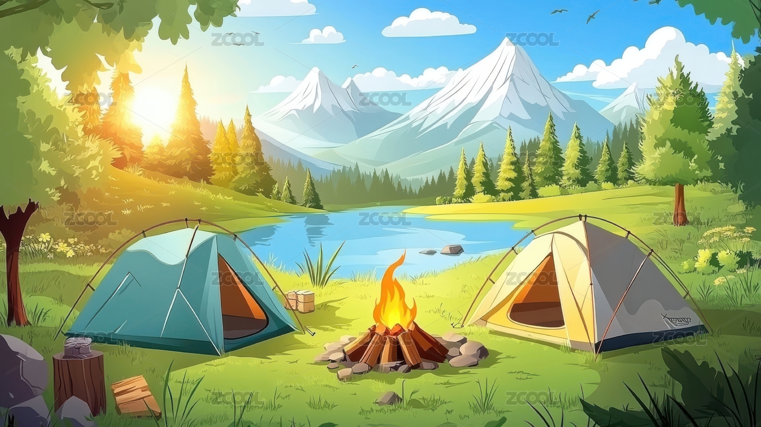 春夏露营主题插画