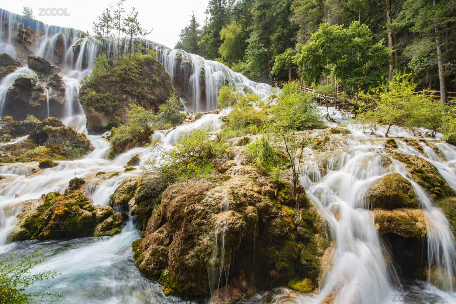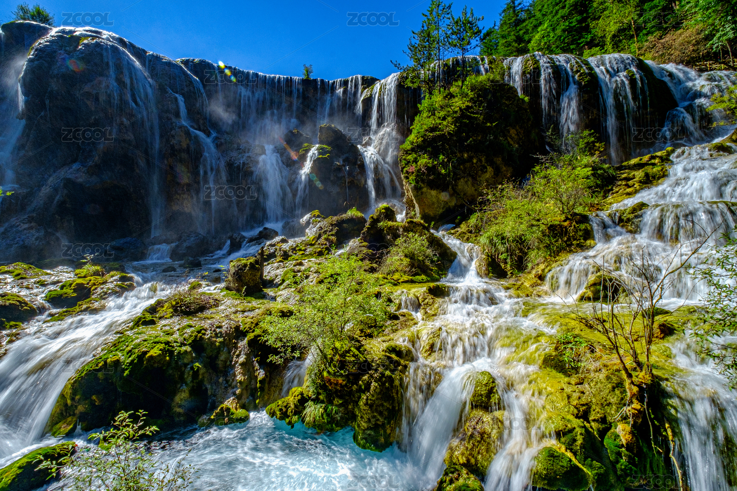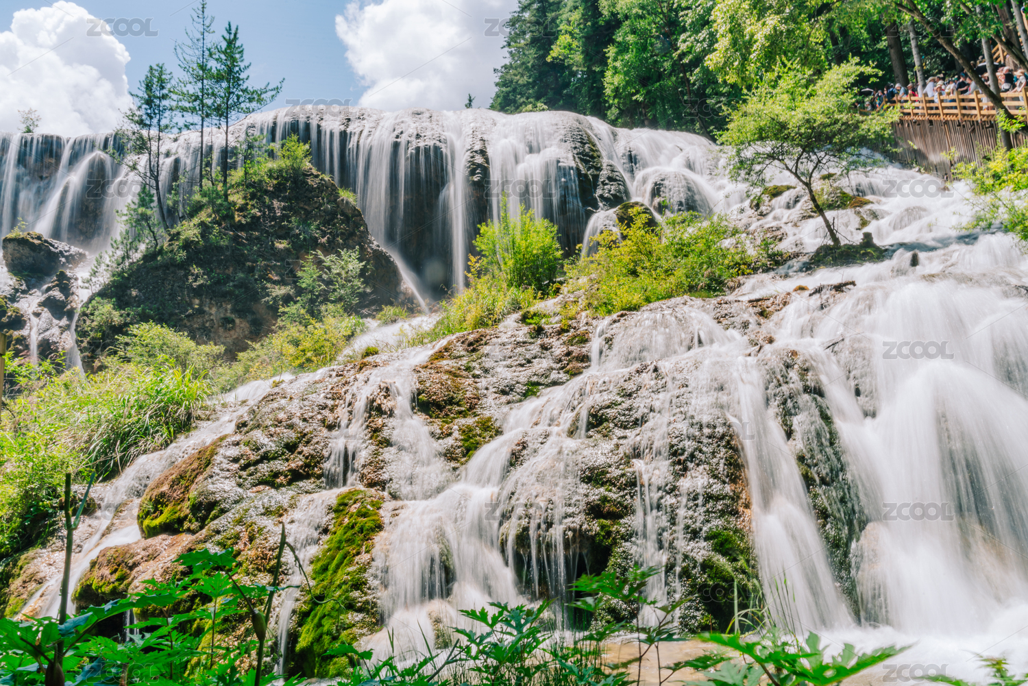 中国四川阿坝九寨沟珍珠滩瀑布的风光