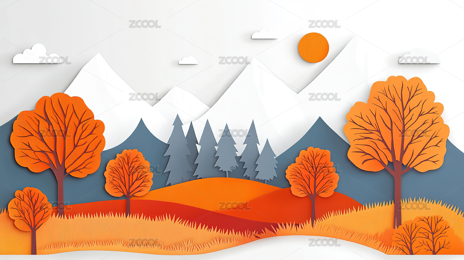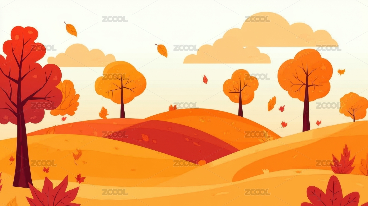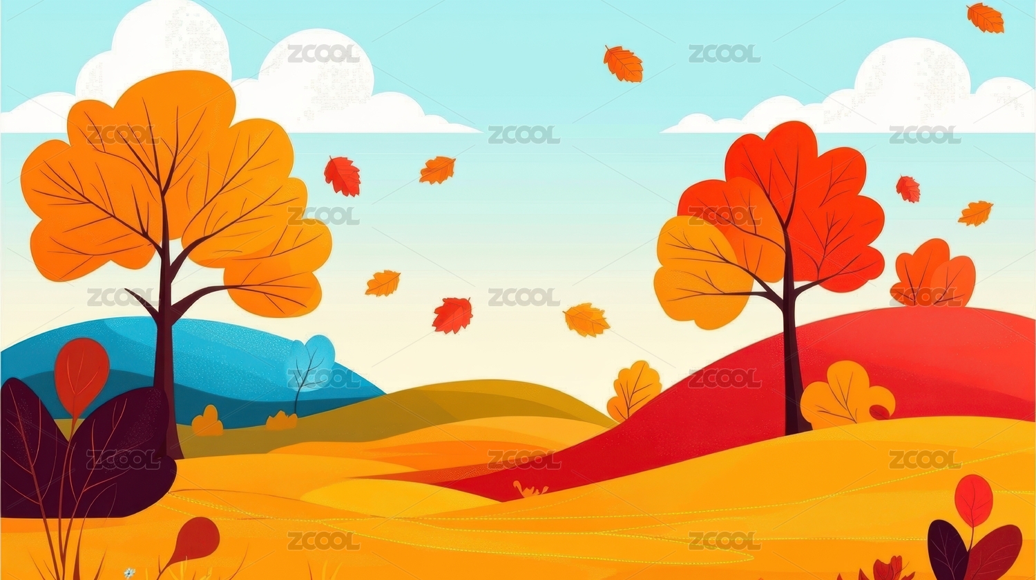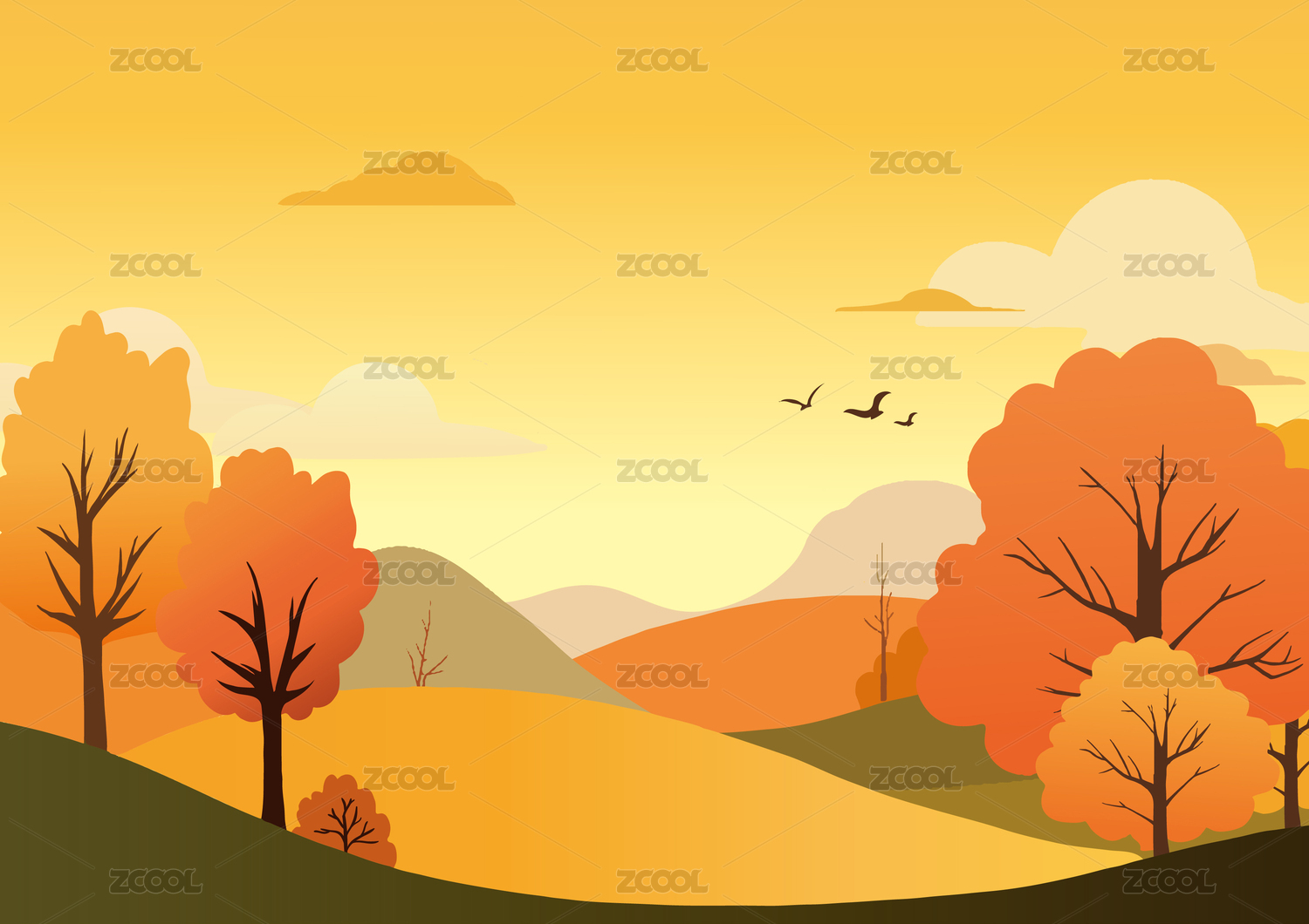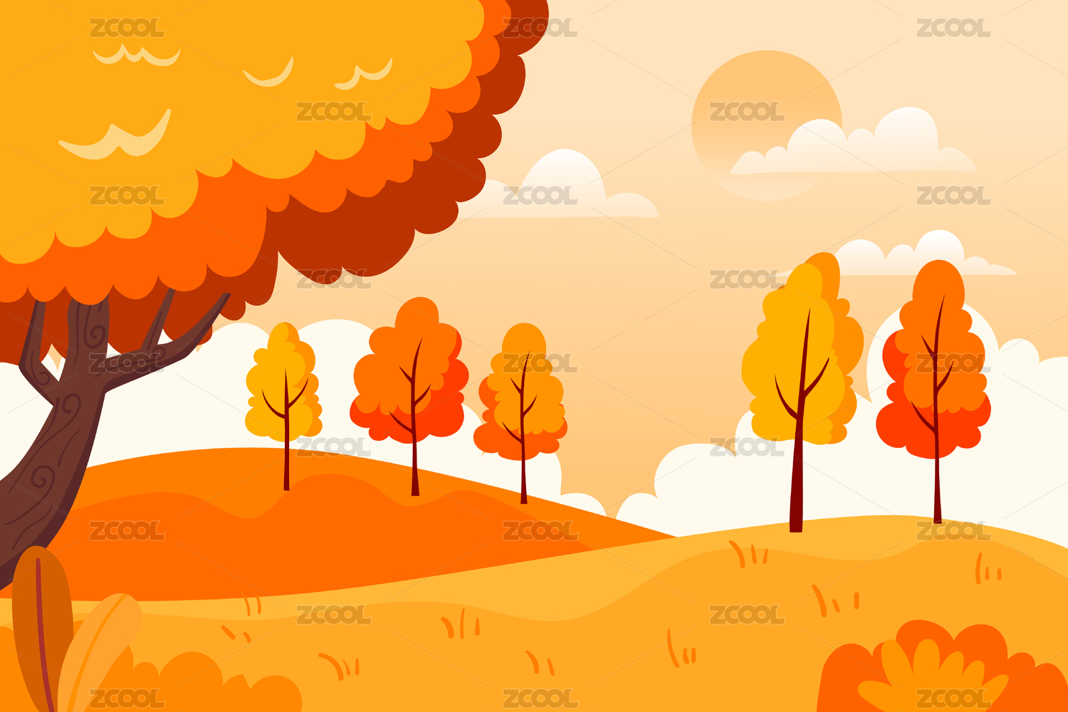 秋天户外自然风景矢量插画