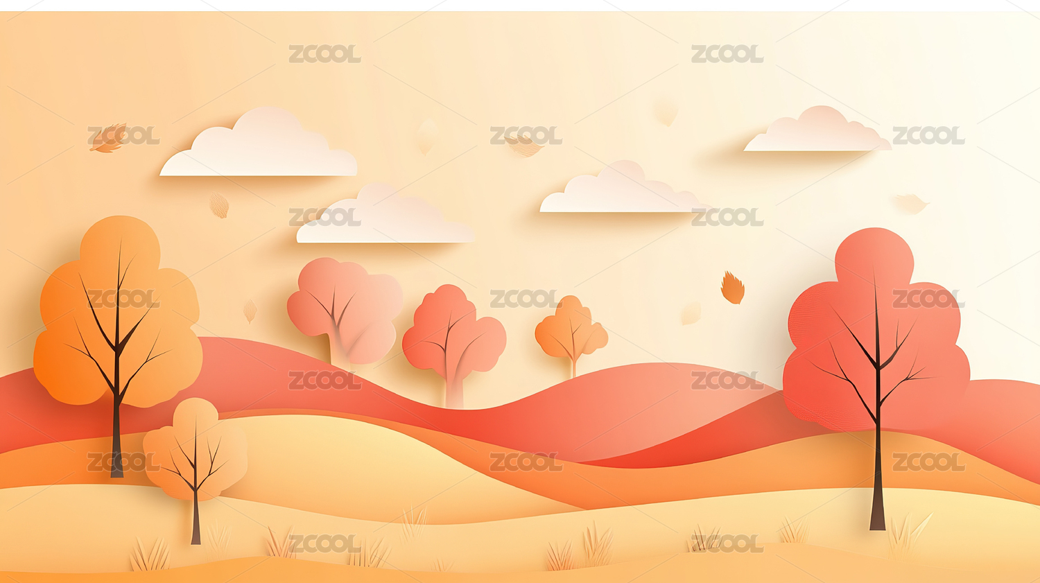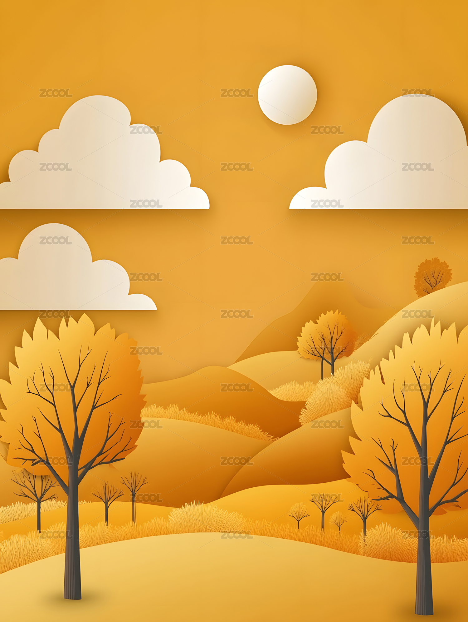 秋天秋季立秋秋分自然户外风景卡通漫画插画