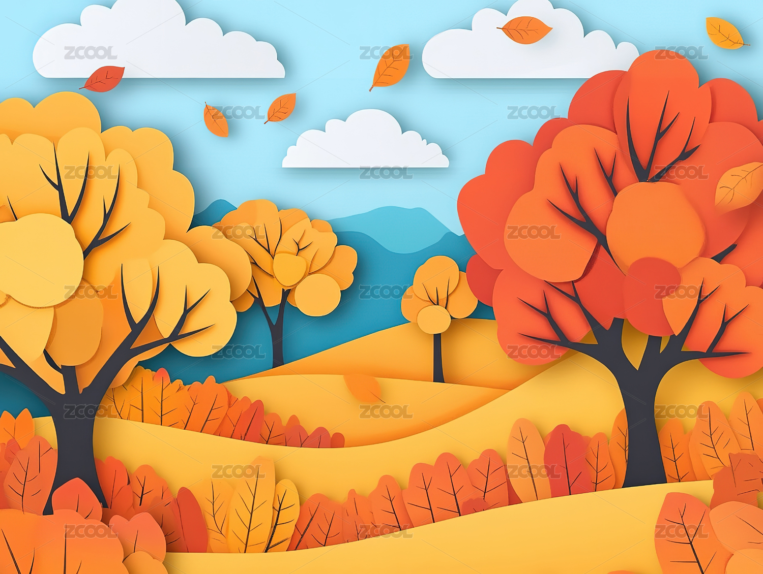 秋天立秋卡通插画背景图