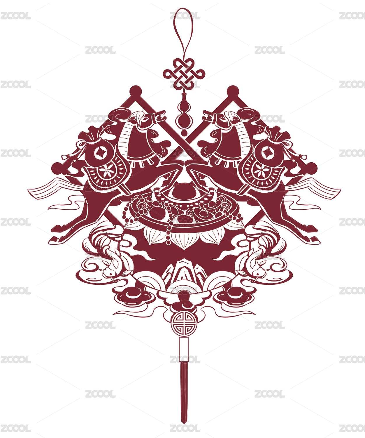 春节矢量元宝牡丹荷花鲤鱼春联装饰插画