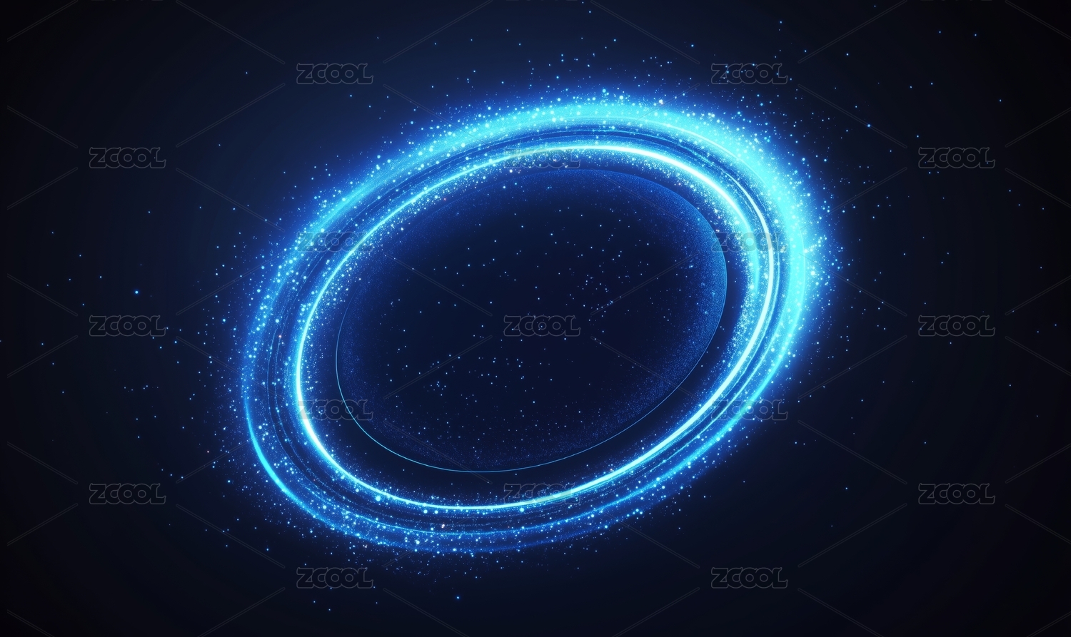 蓝色粒子环绕的圆形光环科技矢量背景素材