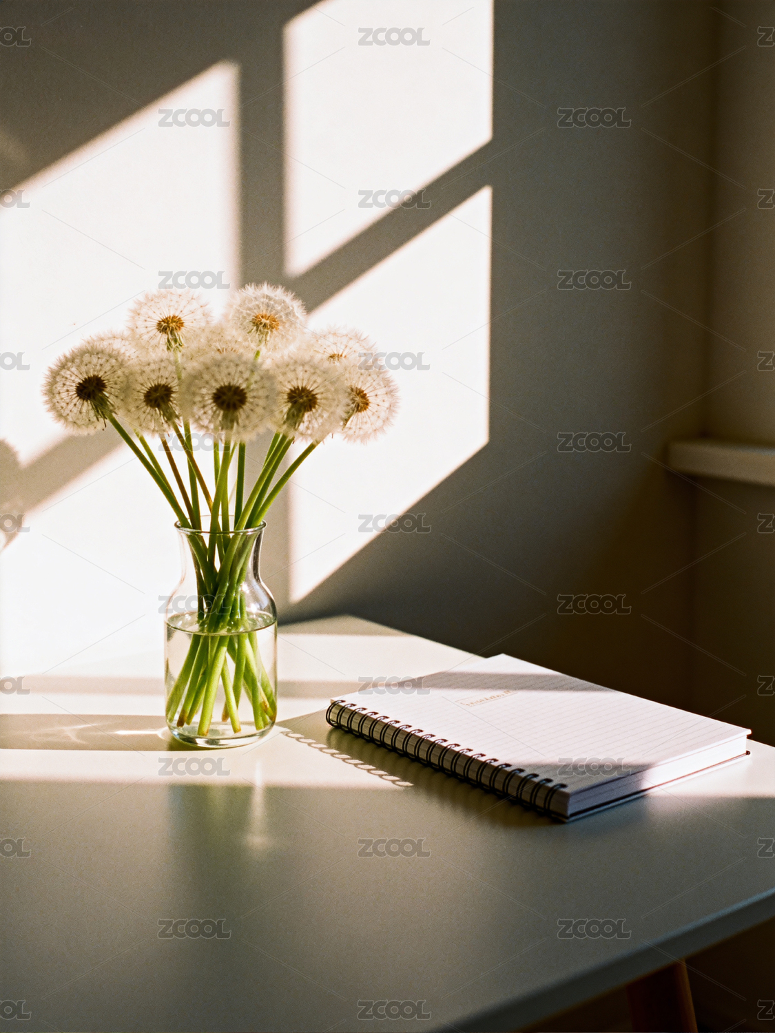 阳光下的蒲公英与笔记本