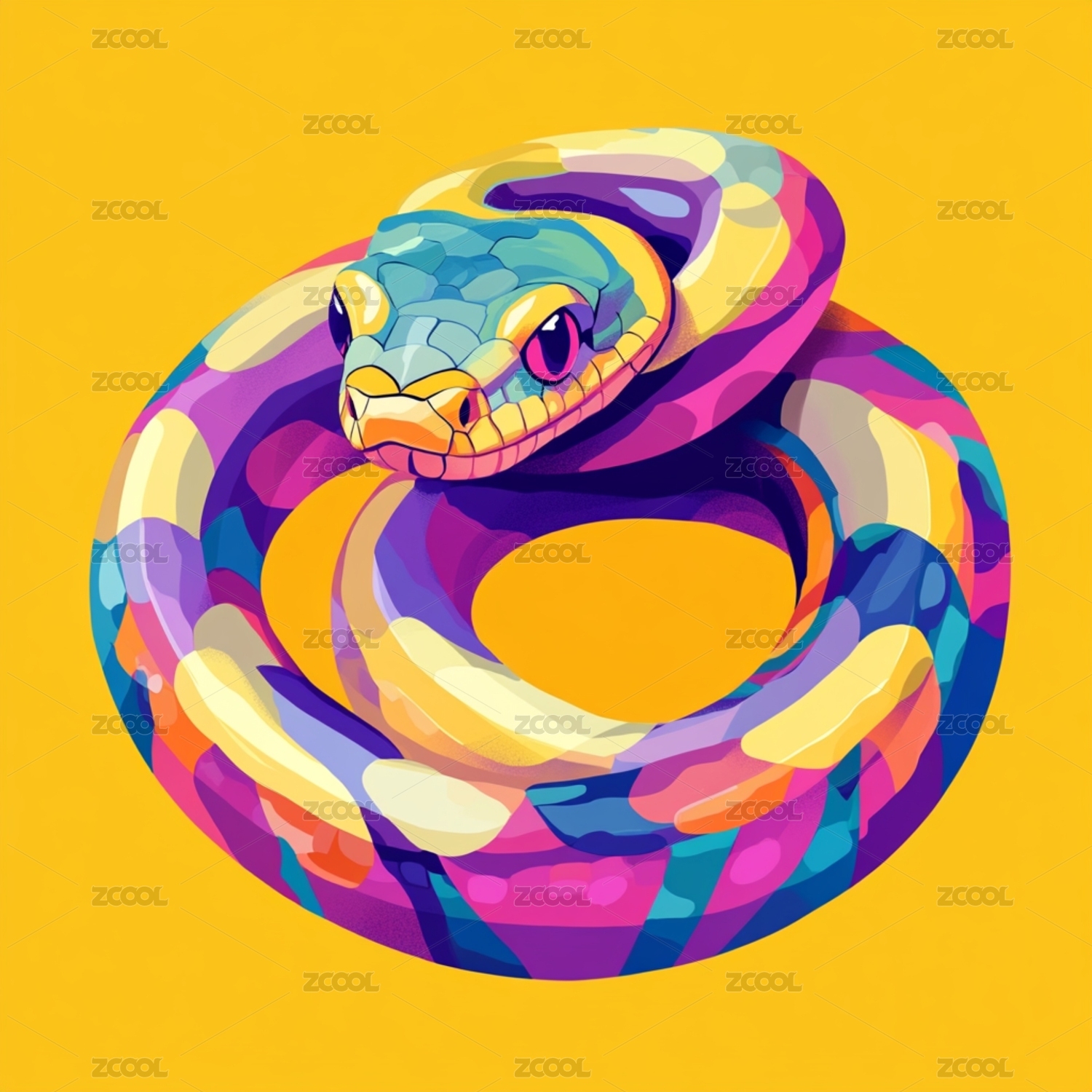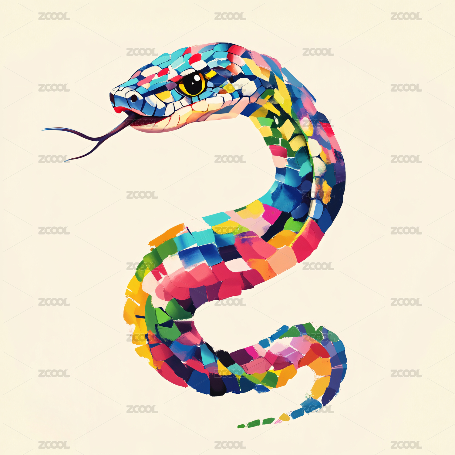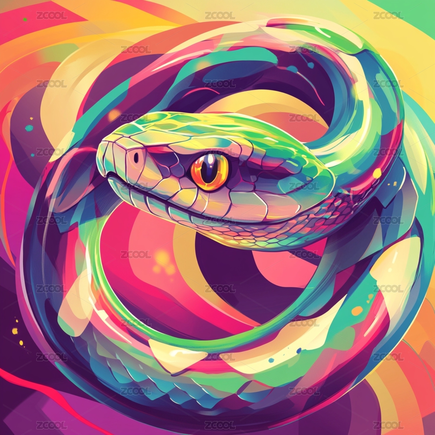 蛇年贺图,装饰蛇,乙巳蛇年,装饰画,生肖蛇,蛇年,蛇,动物,国潮,抽象