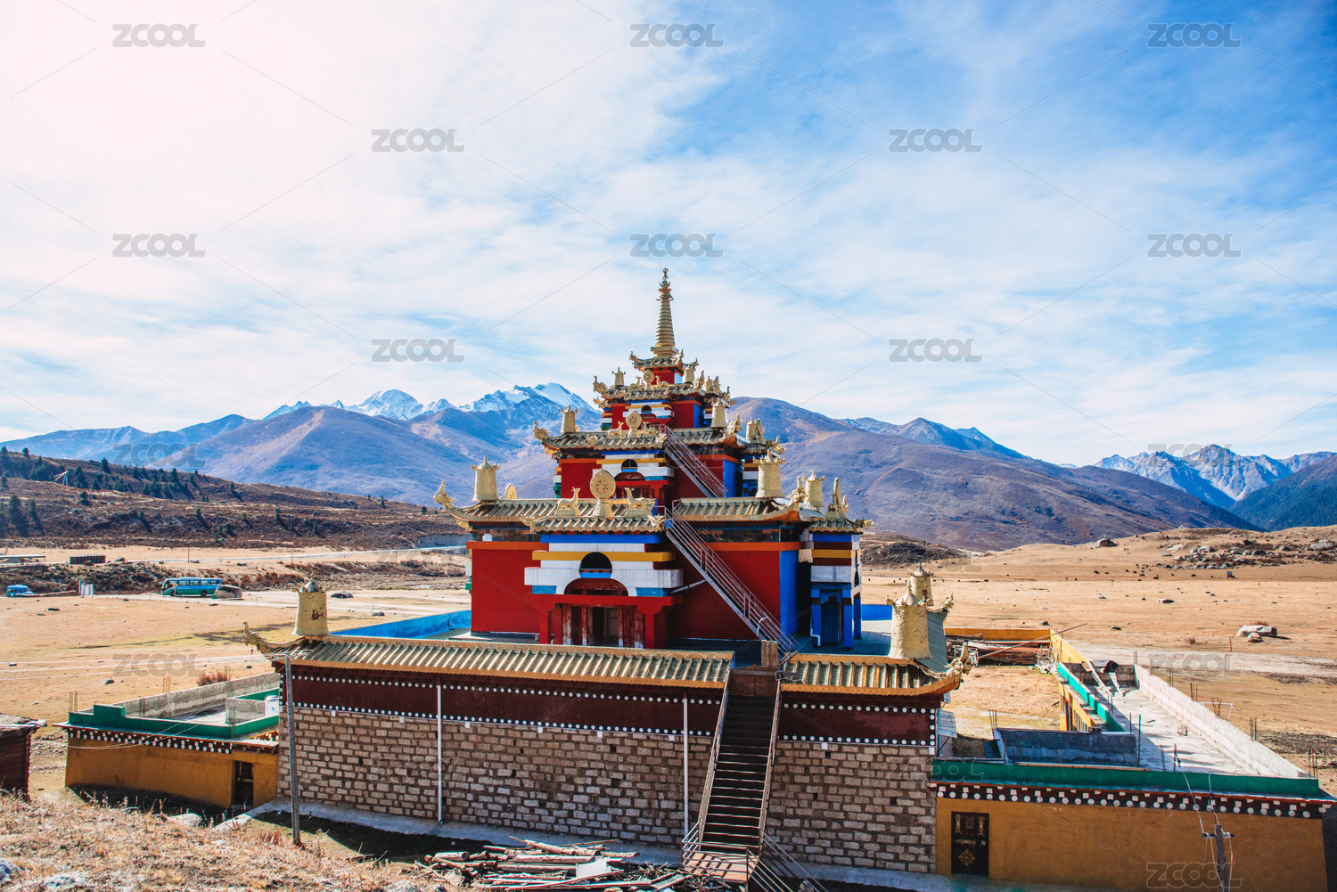 四川甘孜康定县塔公寺雅拉雪山自然建筑风光