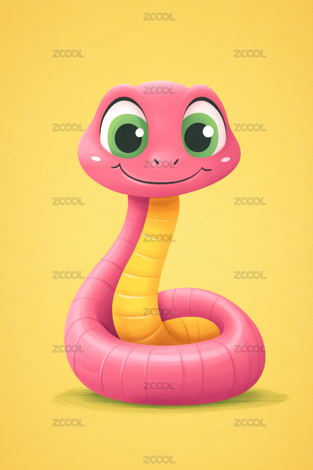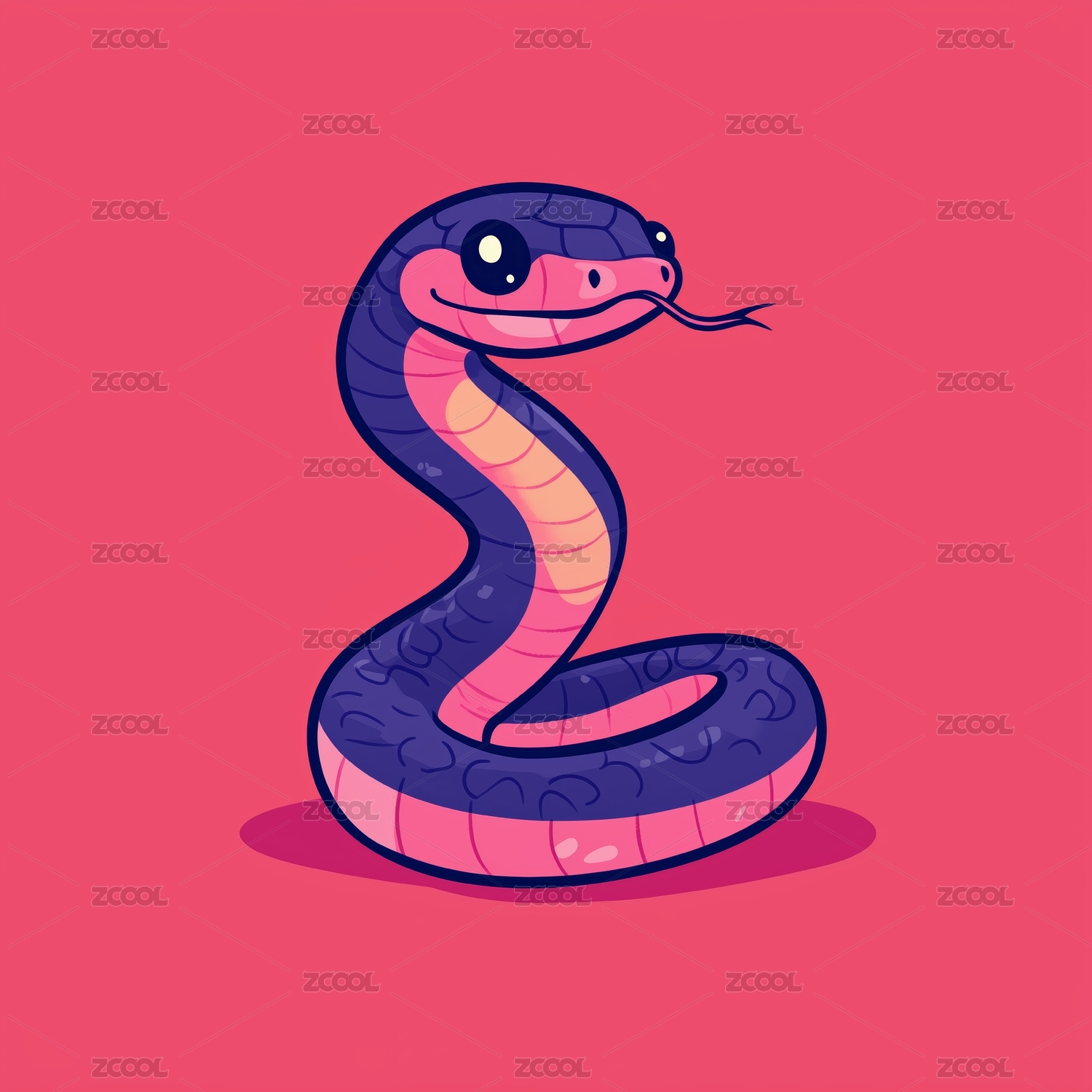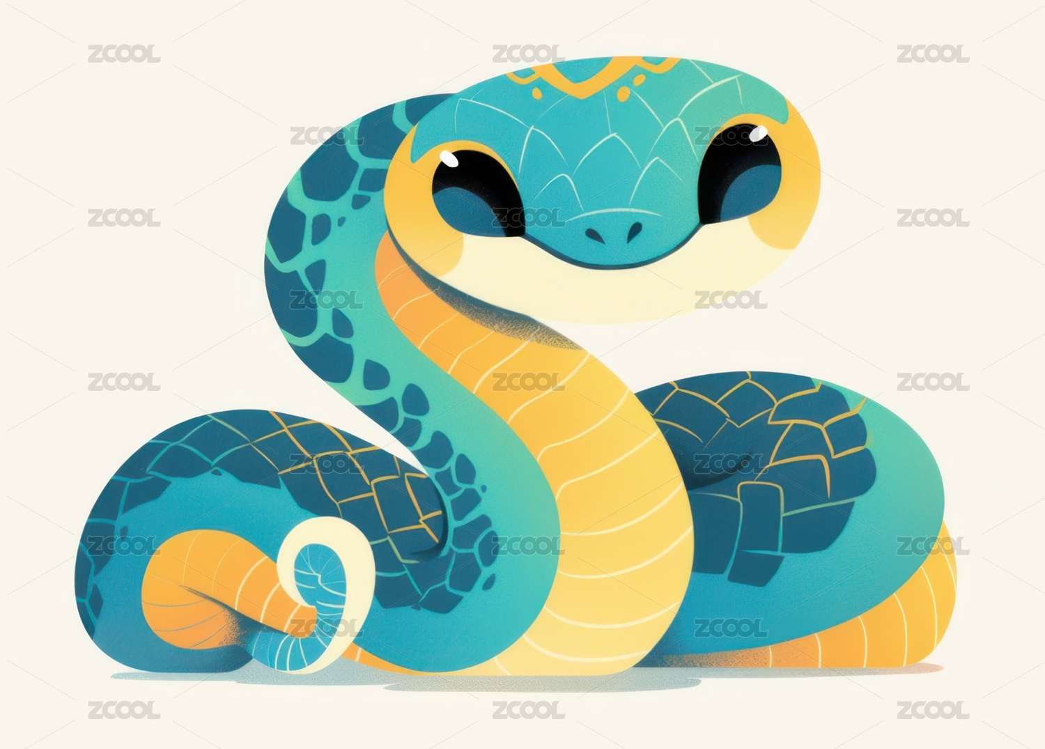 清新明亮一条可爱弯曲盘绕的蛇插画绘画