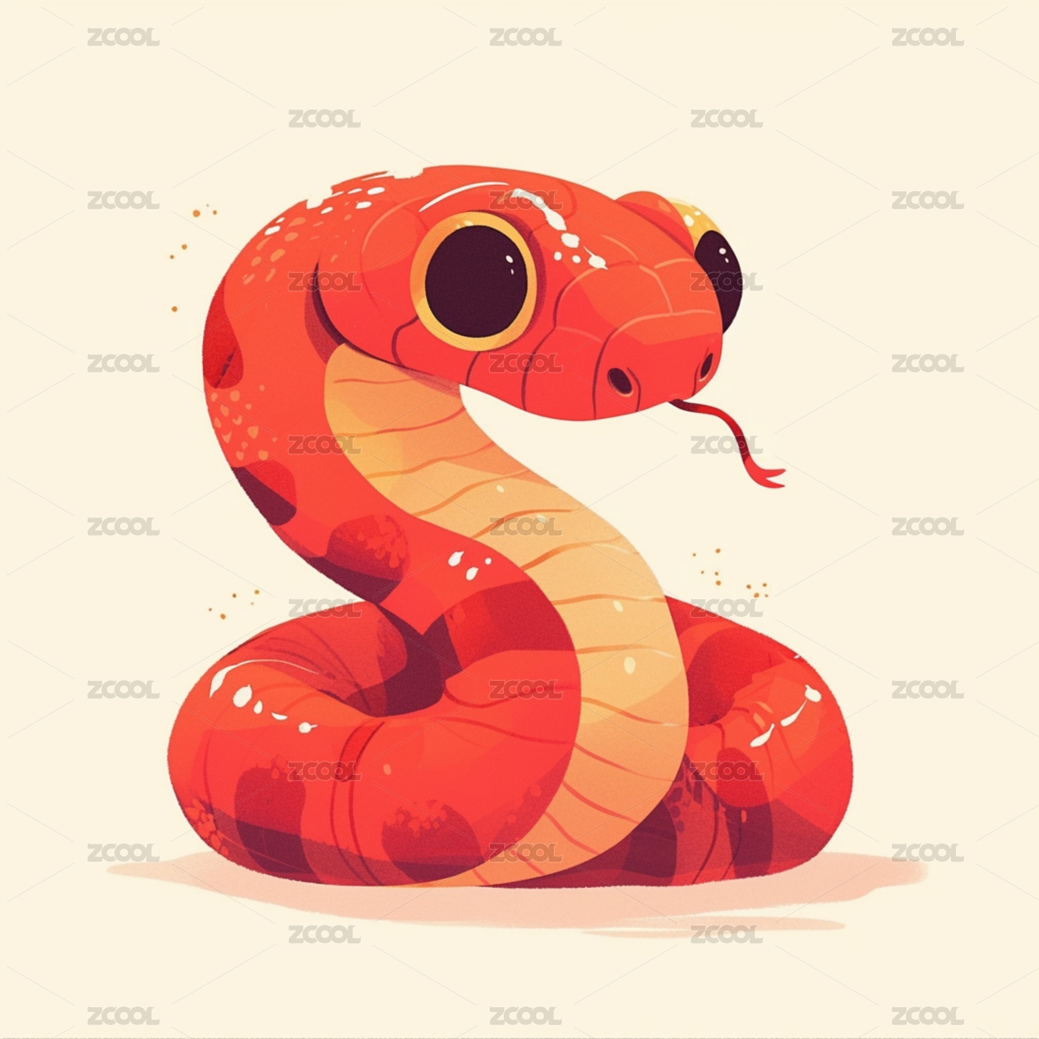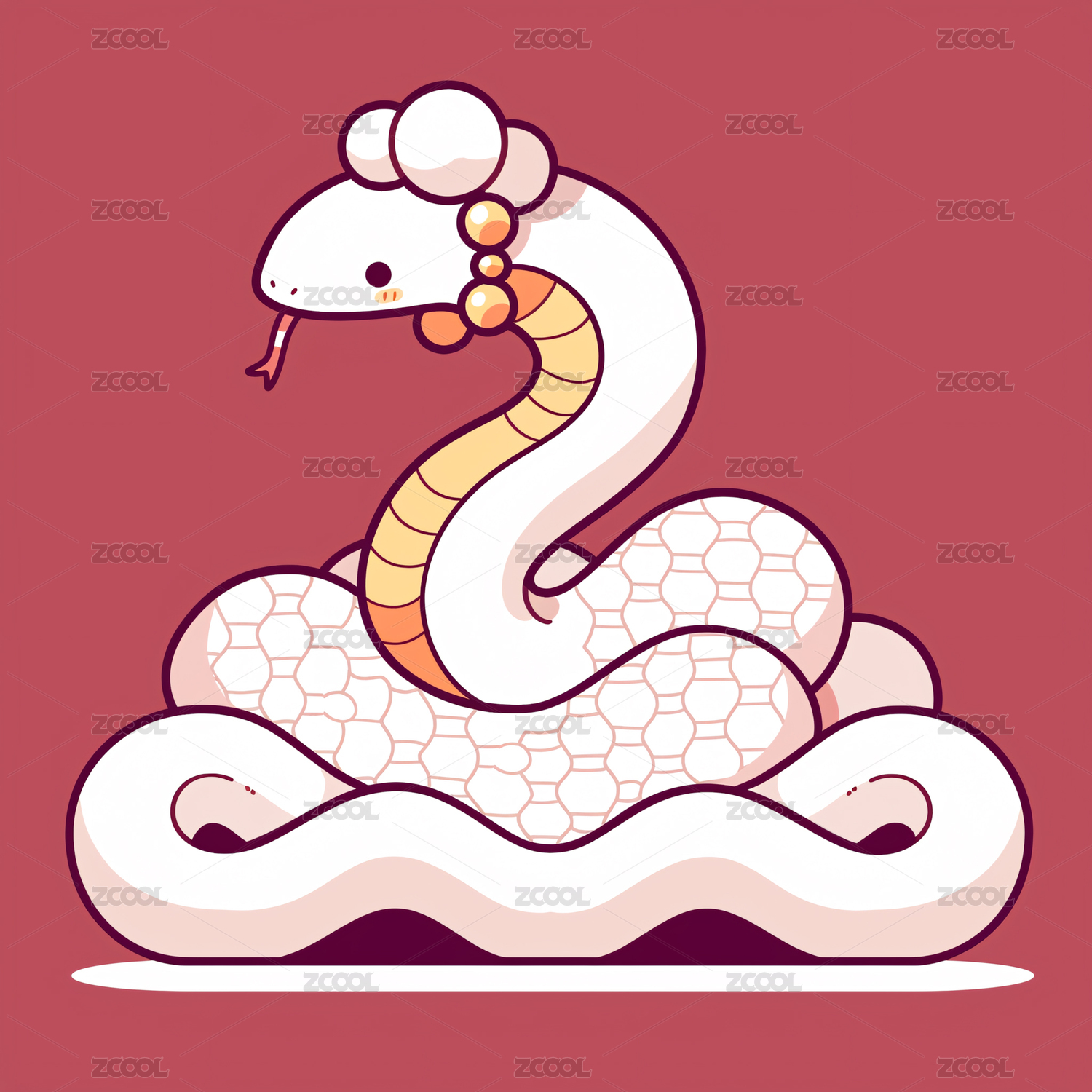 十二生肖蛇年卡通插图可爱IP设计节日背景