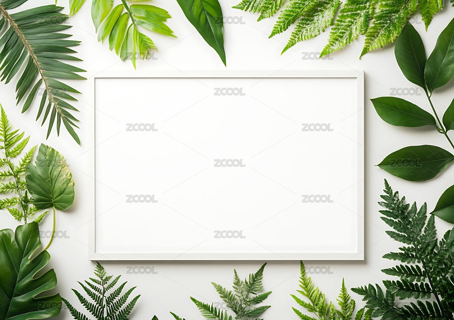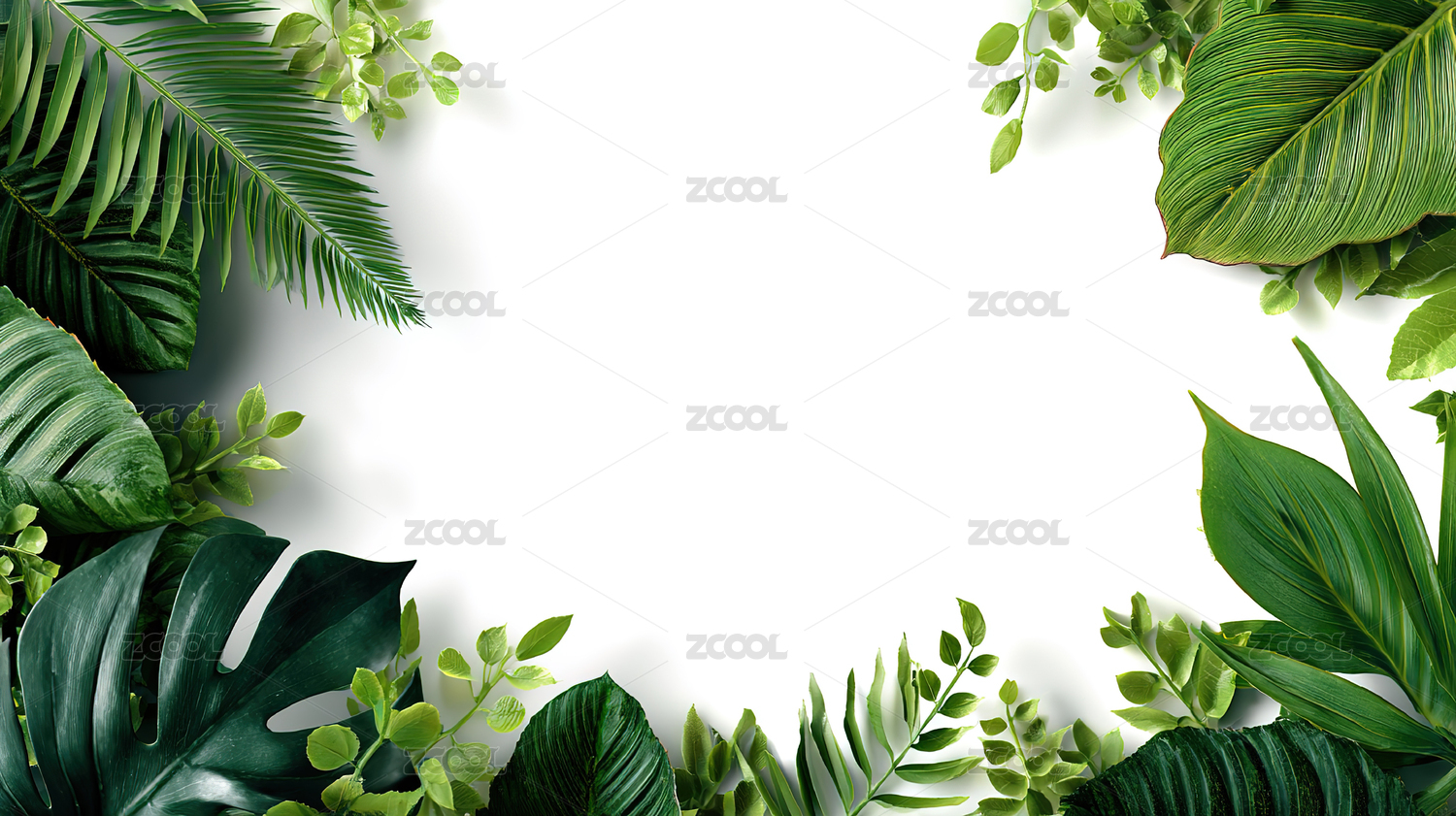 热带绿叶围绕的白色背景