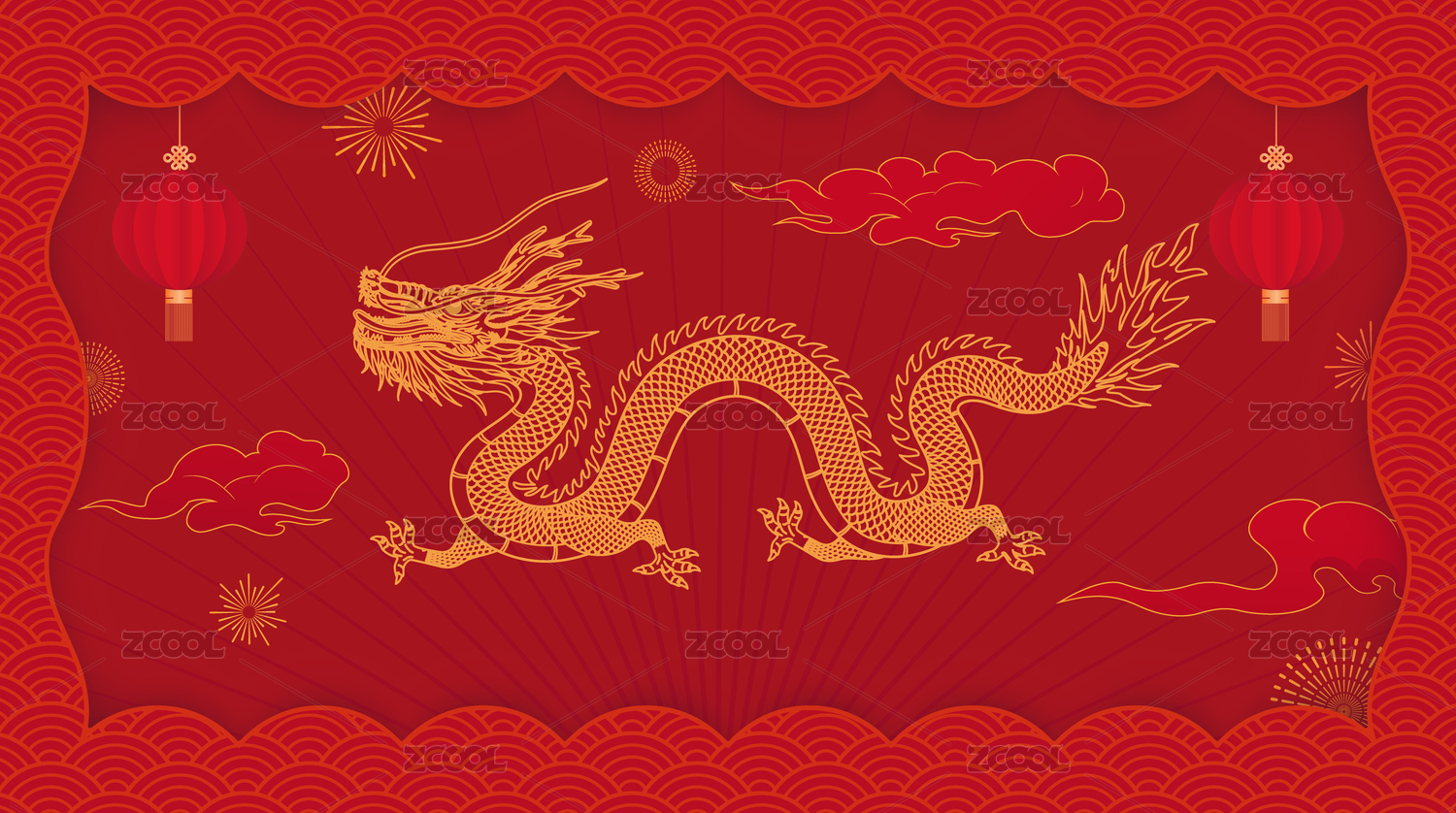 龙年,图案,美丽,中国龙,2024,快乐,黄金,季节,节日,动物