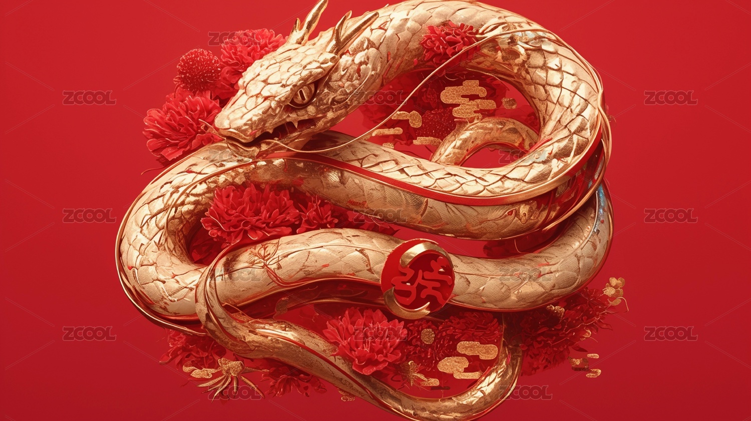 金蛇,蛇年,喜庆,中国红,金色,生肖,属相,新年,春节,国潮风