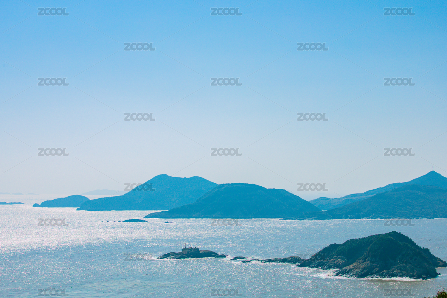 浙江省温州市洞头区-蓝天映衬下的海湾海岛