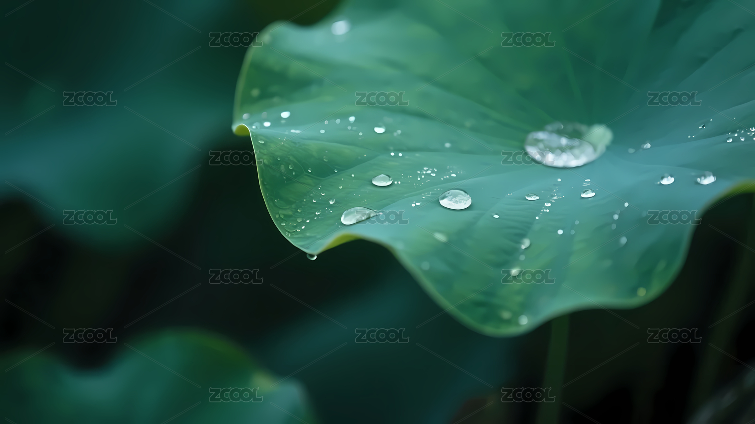 惊蛰谷雨时节绿色树叶叶子上面的雨滴水珠