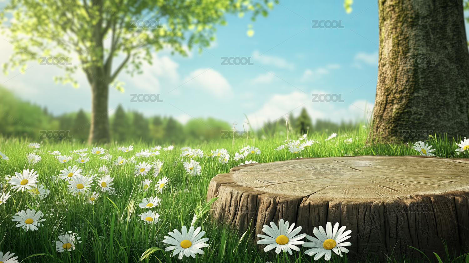 背景,自然,乡村,树桩,木桩,草坪,花朵,田园,蓝天,展台