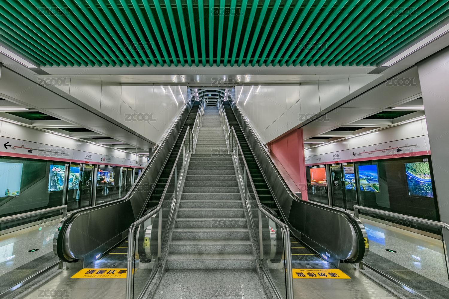 自动扶梯和地下地铁站空平台在中国上海。