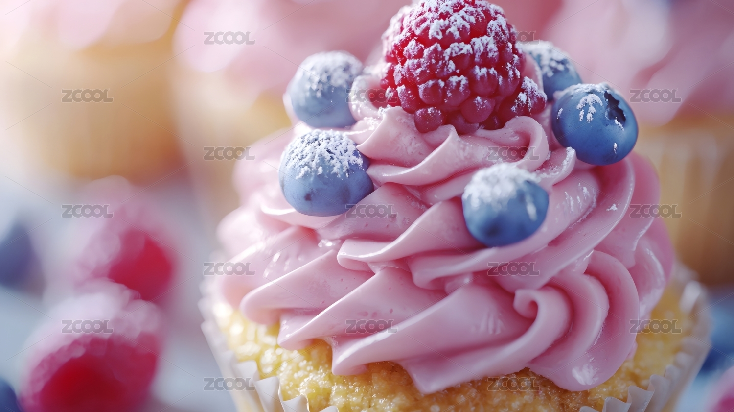 装饰着新鲜草莓的奶油纸杯蛋糕