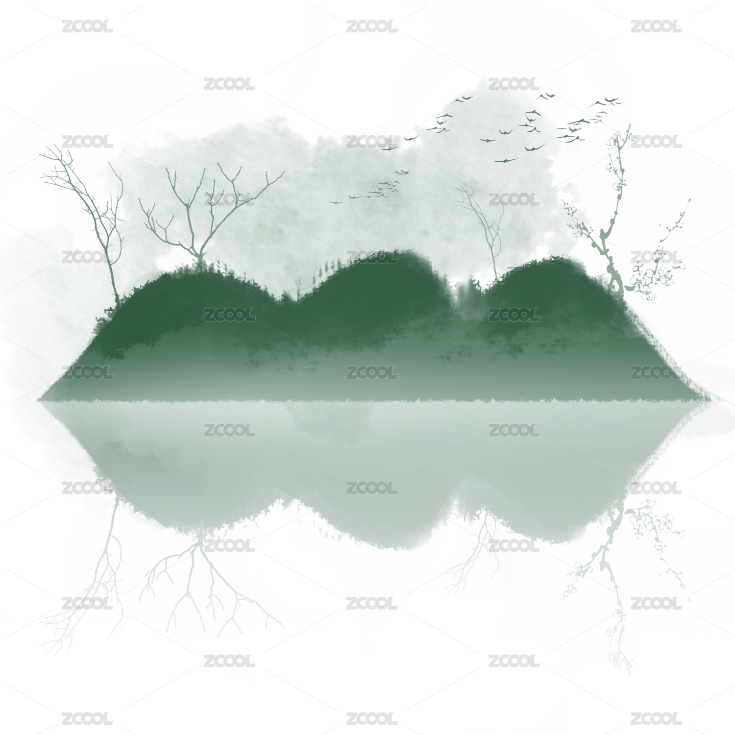 国风水墨山水插画素材配图背景