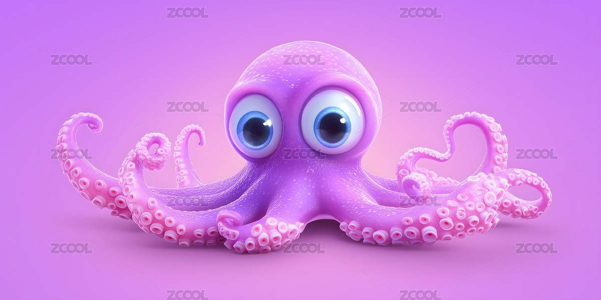 卡通,可爱,壁纸,渲染,3D,紫色,章鱼,海洋生物,动画,插画