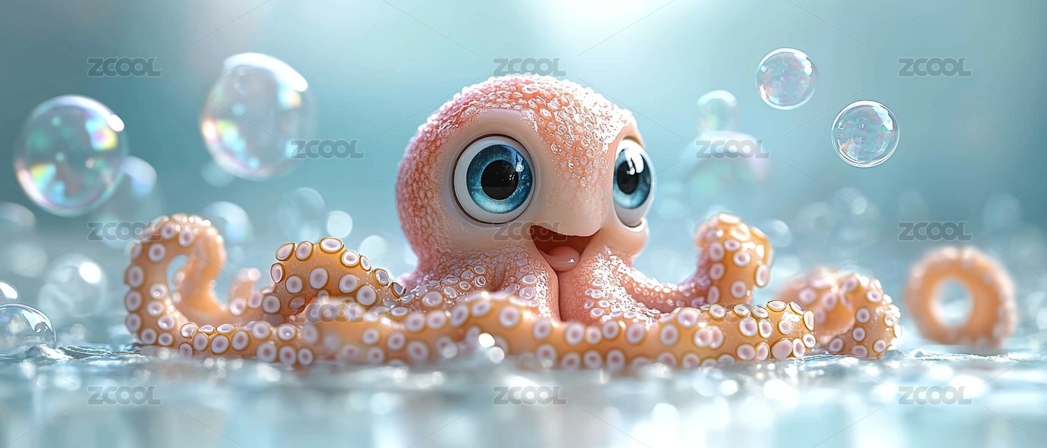 章鱼可爱唯美野生动物3D卡通插画壁纸