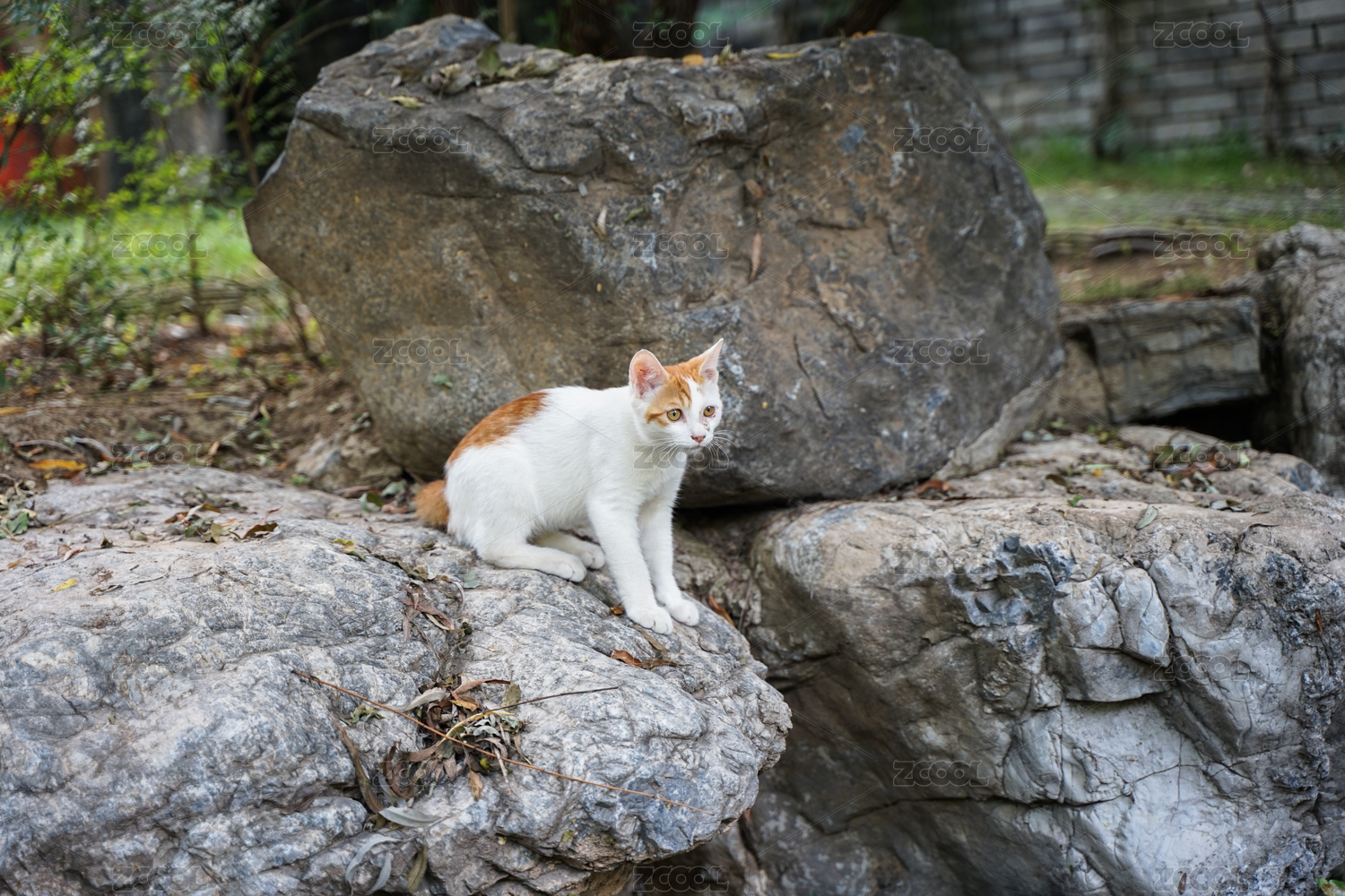 屋外石头上趴着的猫