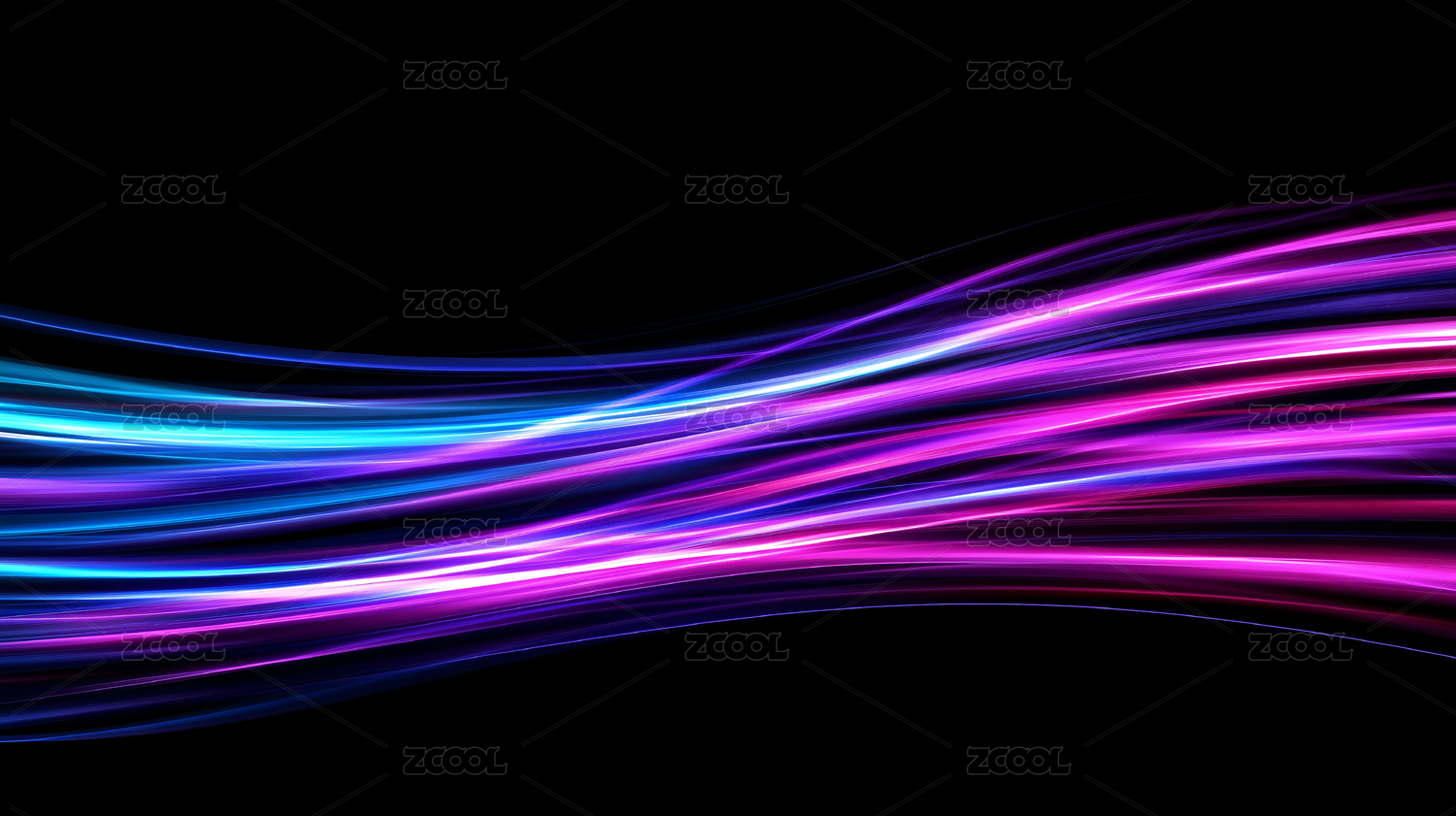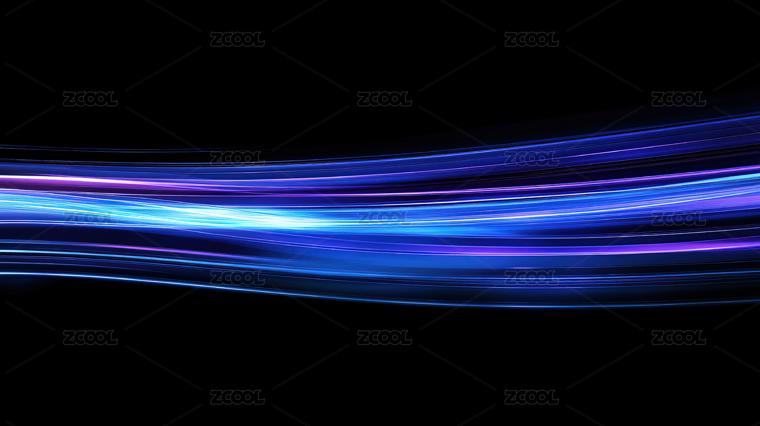 黑色背景上发光的蓝色和紫色光线
