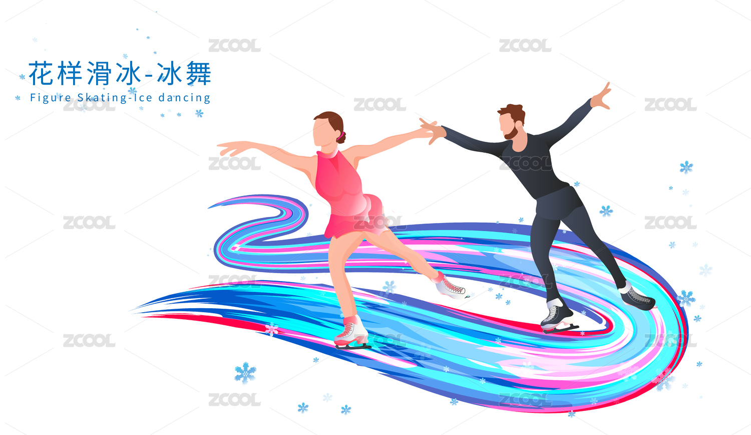 冰舞项目花样滑冰运动竞技冬奥会的插画