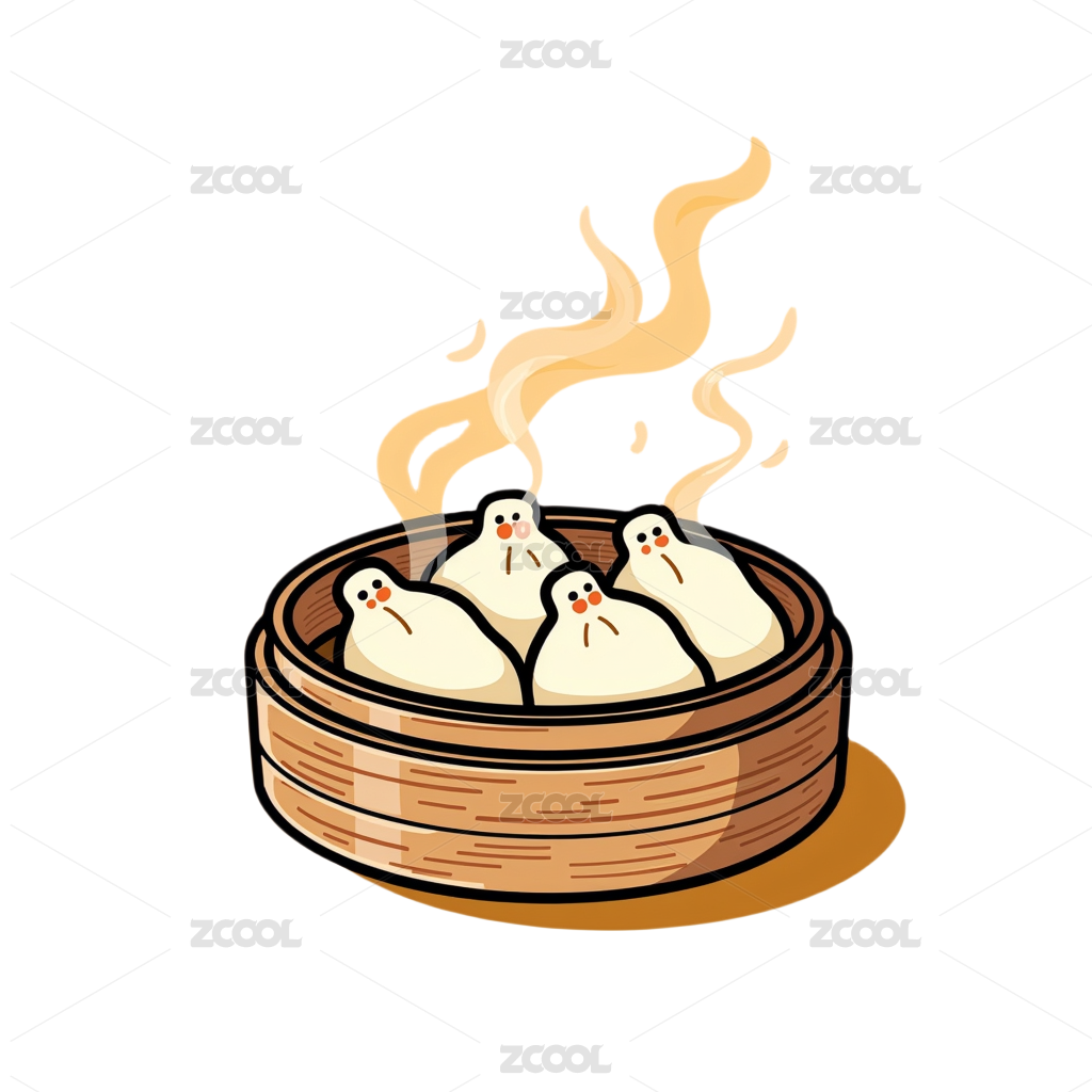 卡通手绘餐饮美食小笼包插画