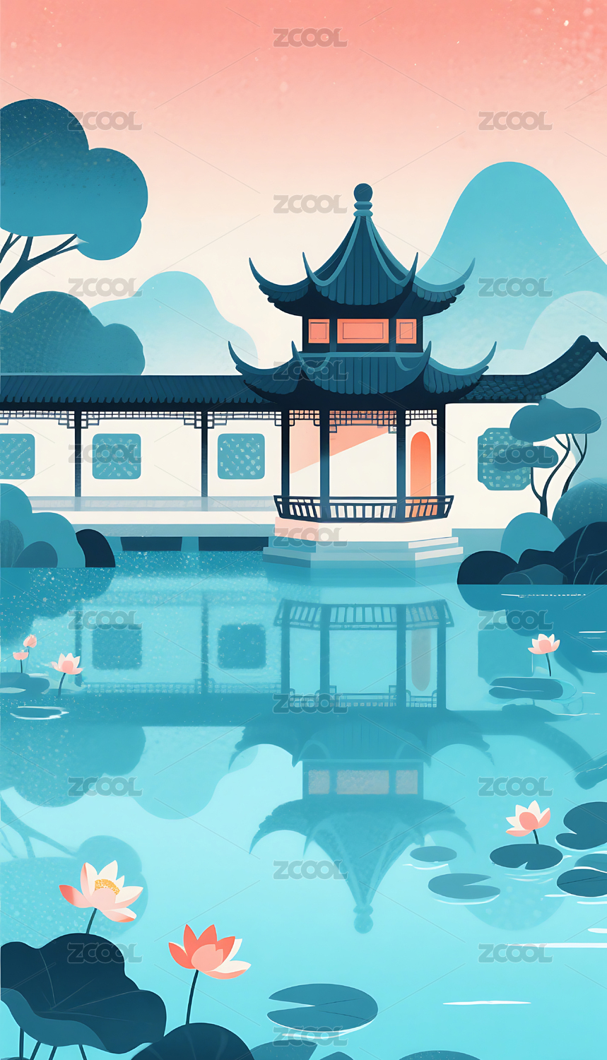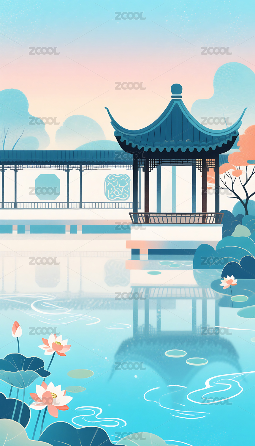 中式园林插画背景