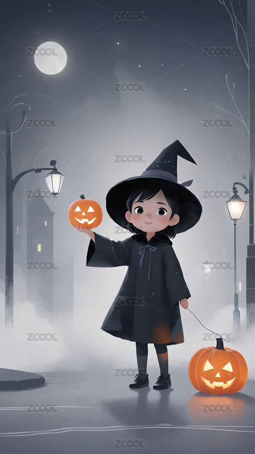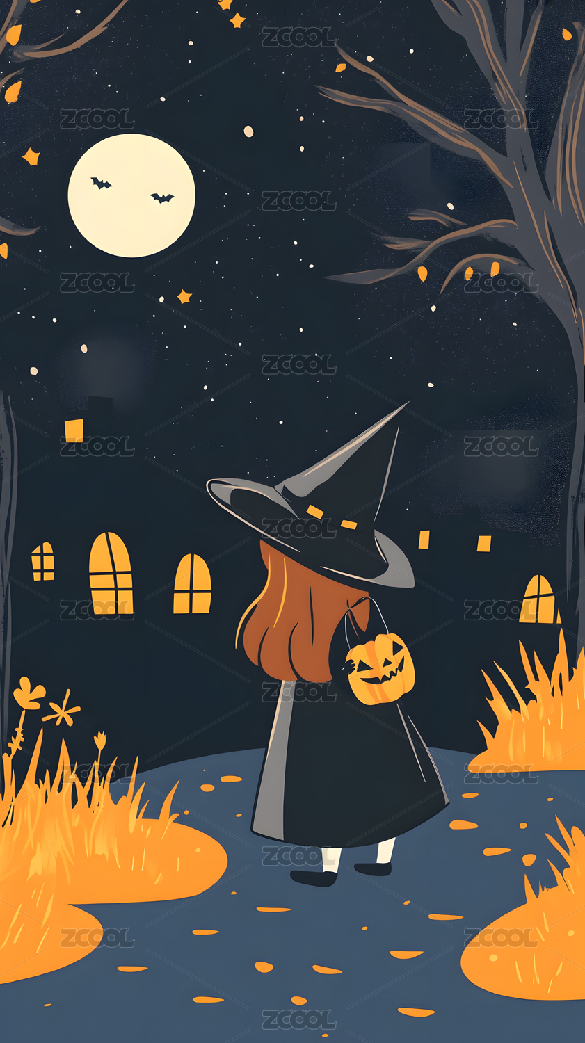 万圣节夜晚的小女巫